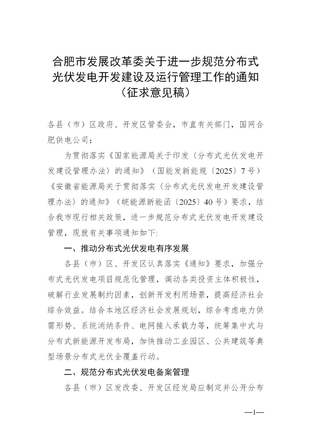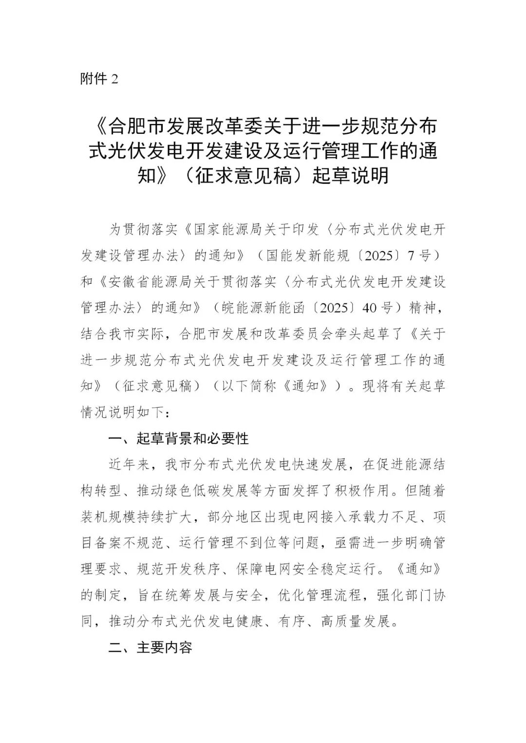 關(guān)于公開征求《合肥市發(fā)展改革委關(guān)于進(jìn)一步規(guī)范分布式光伏發(fā)電開發(fā)建設(shè)及運(yùn)行管理工作的通知》意見建議的公告