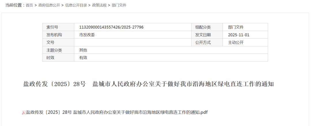 光伏頭條獲悉,11月3日,江蘇鹽城市人民政府發(fā)布《關(guān)于做好我市沿海地區(qū)綠電直連工作的通知》。