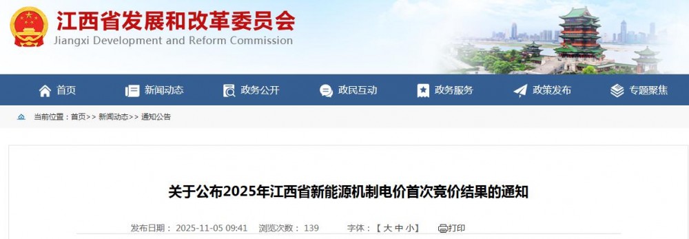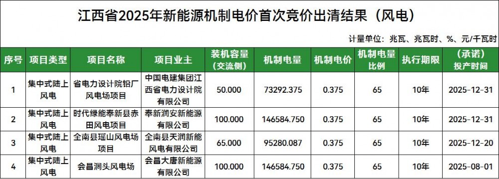 關(guān)于公布2025年江西省新能源機(jī)制電價(jià)首次競(jìng)價(jià)結(jié)果的通知