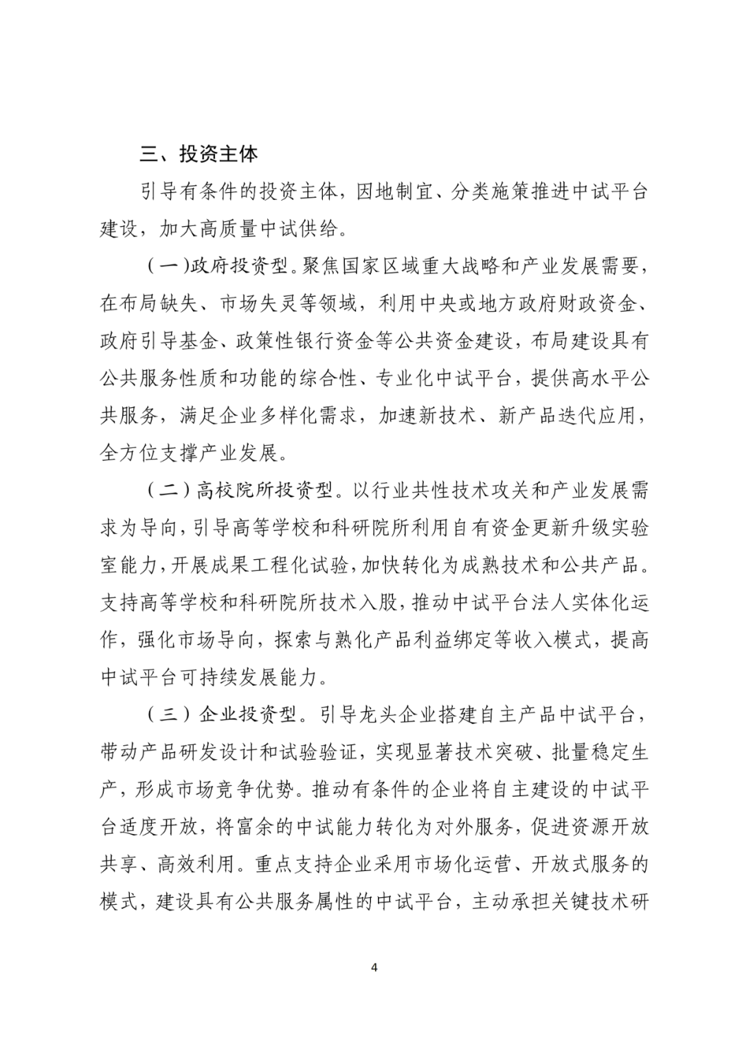 (一)請各方高度重視中試平臺(tái)體系化布局和高水平建設(shè)工作,建立健全多元穩(wěn)定的投入機(jī)制、科學(xué)規(guī)范的運(yùn)行機(jī)制、精準(zhǔn)高效的支持機(jī)制,加大資金、土地、人才等政策供給和資源支持,促進(jìn)中試平臺(tái)不斷提升發(fā)展效能,帶動(dòng)區(qū)域和行業(yè)中試能力整體性提升。