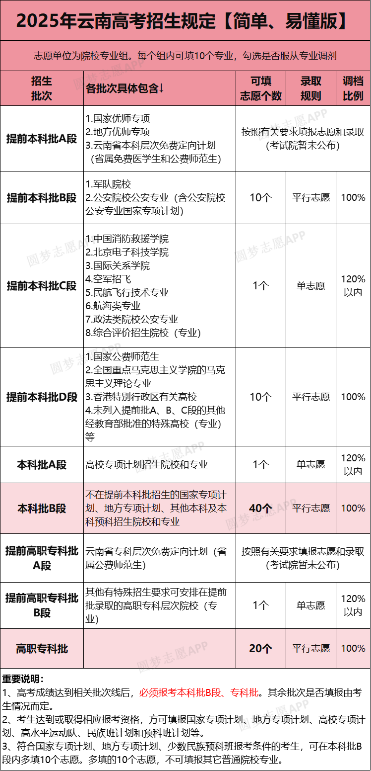 本科批B段:可填報40個志愿,包含不在提前本科批招生的國家專項計劃、地方專項計劃、其他本科及本科預科招生院校和專業(yè)。