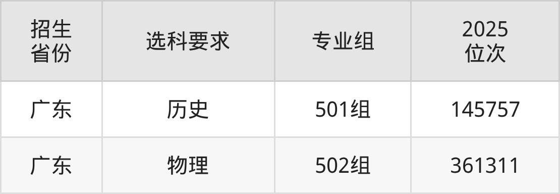 廣東汕頭幼兒師范高等??茖W(xué)校2025年的位次差異較大,最高位次是145757位(廣東歷史類)、最低位次是361311位(廣東物理類)。具體位次請看下圖: