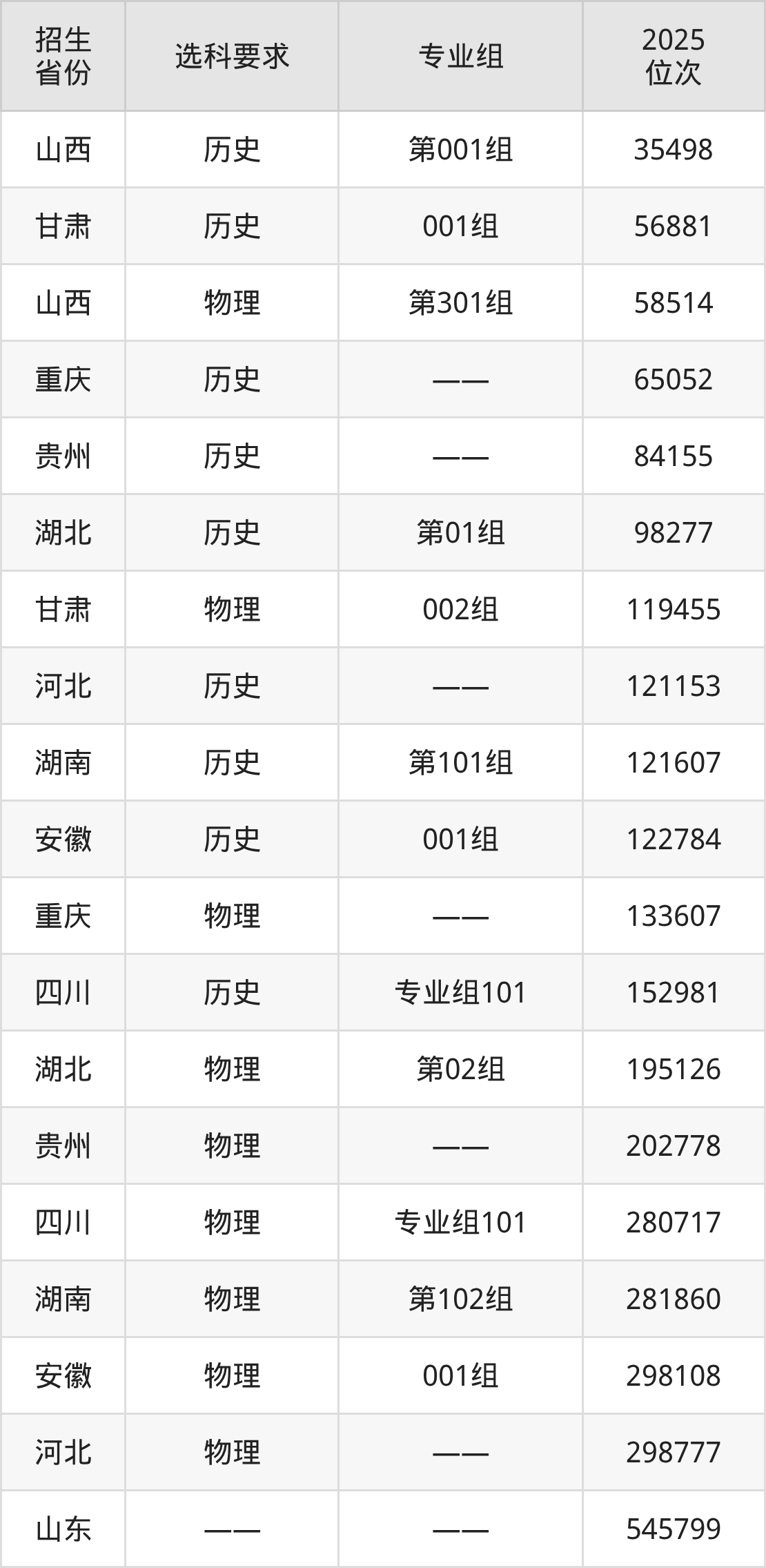 南陽(yáng)科技職業(yè)學(xué)院2025年在全國(guó)各省的位次差異較大,最高位次是35498位(山西歷史類(lèi))、最低位次是545799位(山東)。各省具體位次請(qǐng)看下圖: