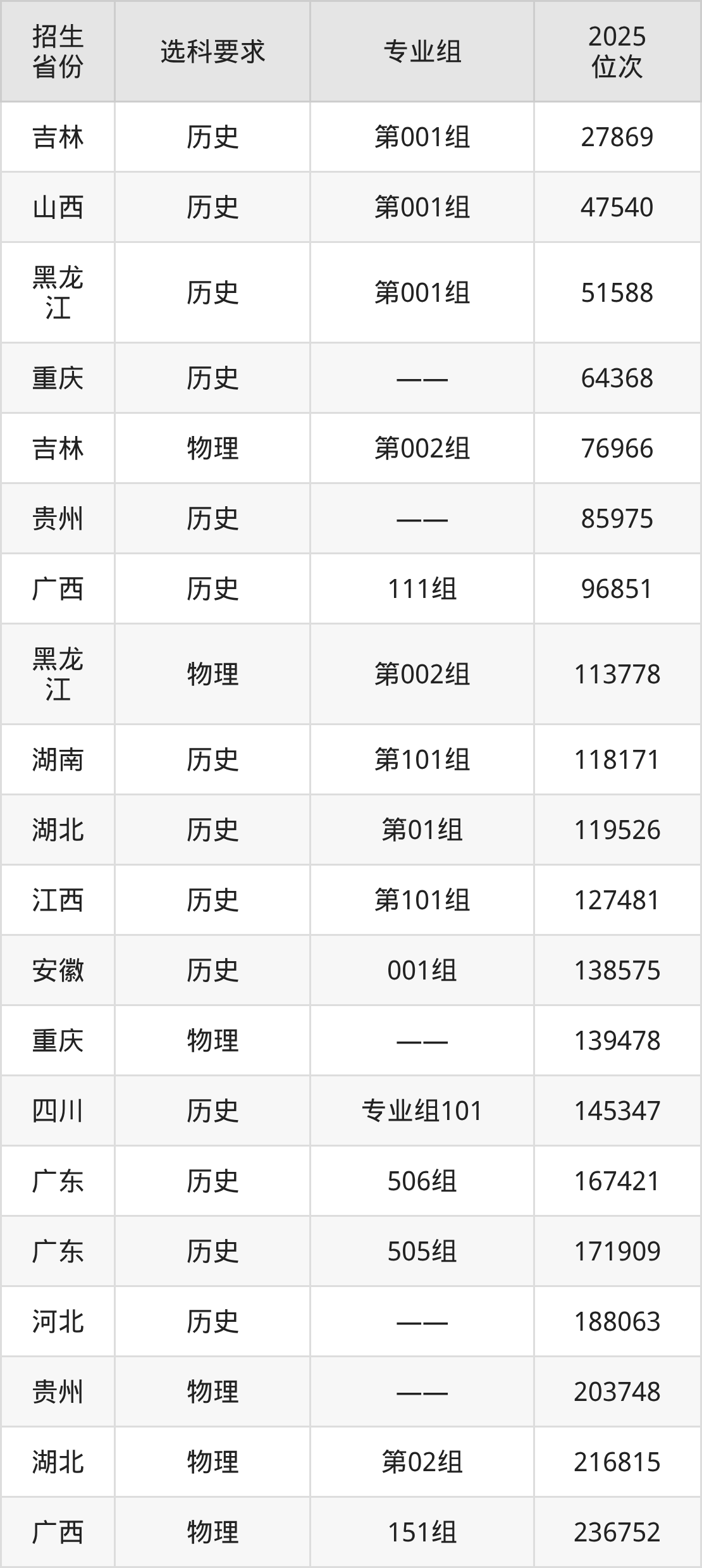 欽州幼兒師范高等??茖W(xué)校2025年在全國各省的位次差異較大,最高位次是27869位(吉林歷史類)、最低位次是634377位(山東)。各省具體位次請看下圖: