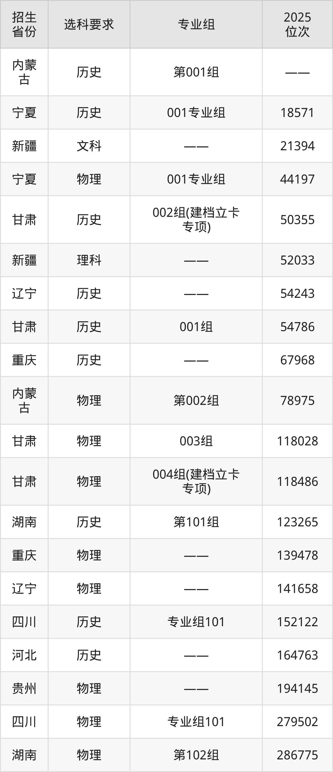 石河子工程職業(yè)技術(shù)學(xué)院2025年在全國各省的位次差異較大,最高位次是18571位(寧夏歷史類)、最低位次是650586位(山東)。各省具體位次請看下圖: