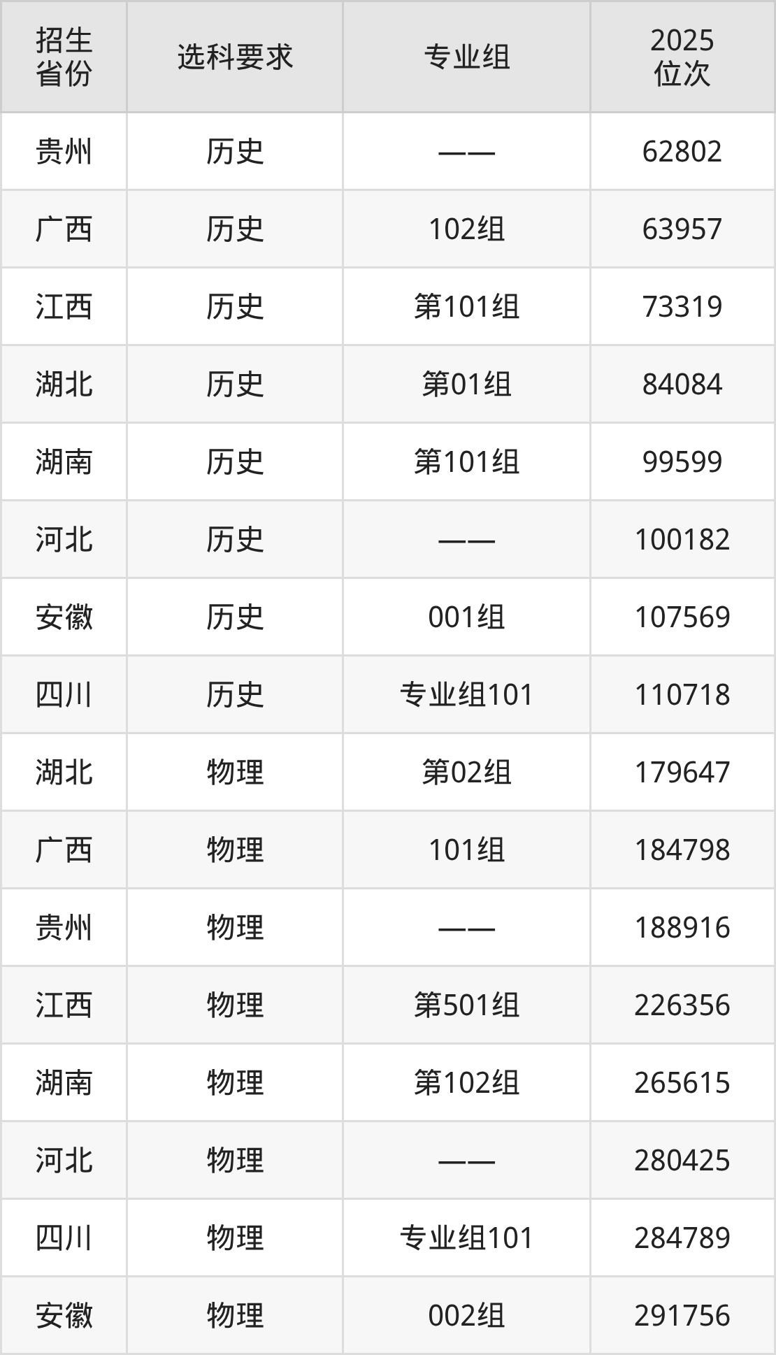 皖北衛(wèi)生職業(yè)學院2025年在全國各省的位次差異較大,最高位次是62802位(貴州歷史類)、最低位次是291756位(安徽物理類)。各省具體位次請看下圖: