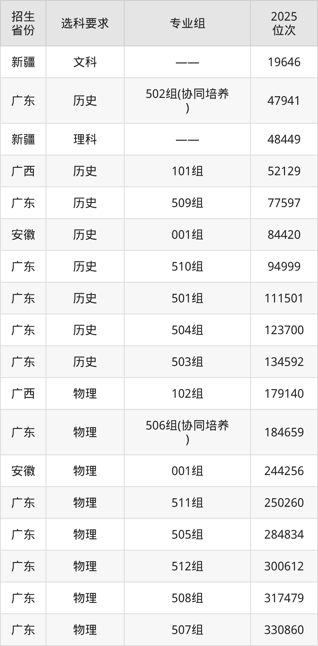 廣東司法警官職業(yè)學(xué)院2025年在全國各省的位次差異較大,最高位次是19646位(新疆文科)、最低位次是330860位(廣東物理類)。各省具體位次請看下圖: