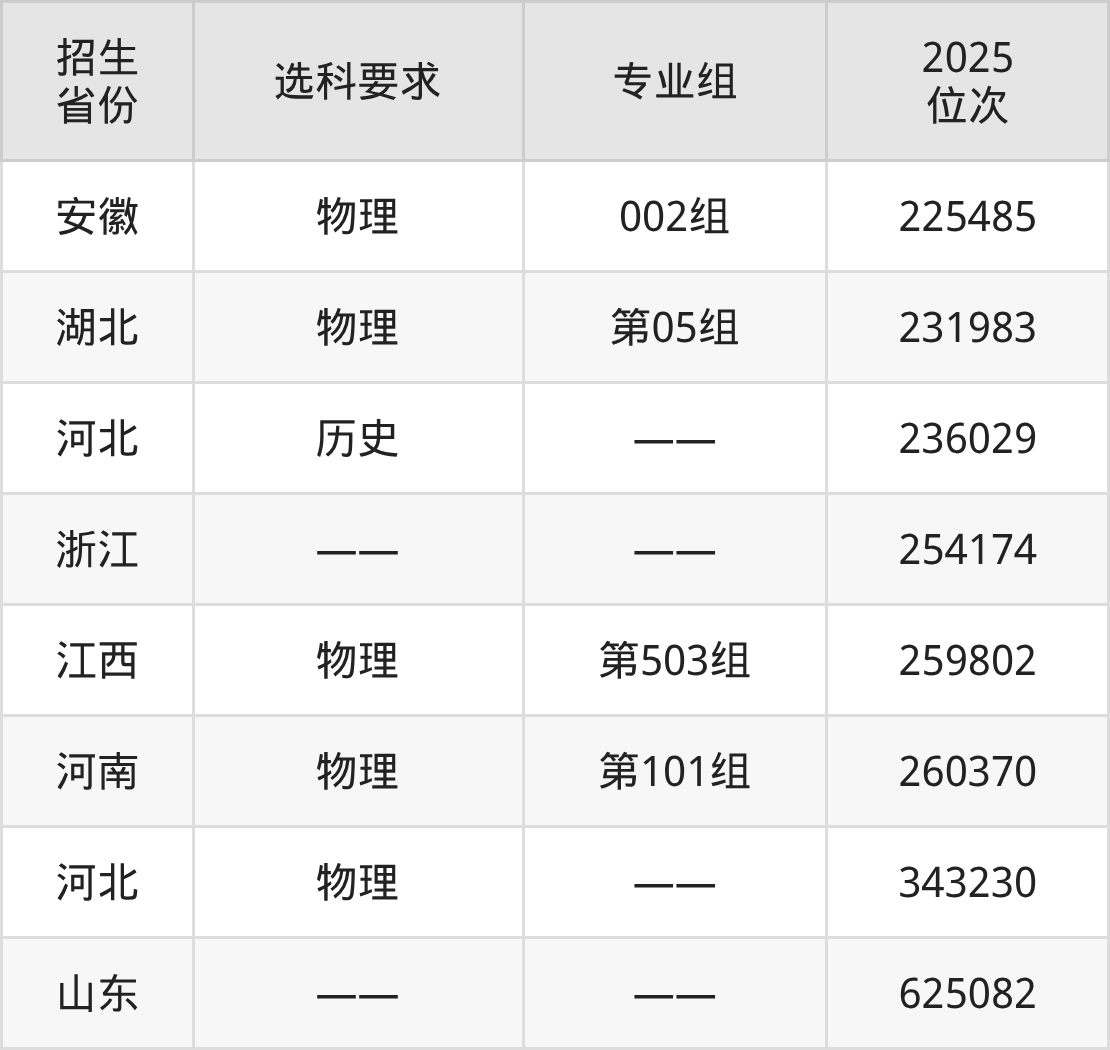 景德鎮(zhèn)藝術(shù)職業(yè)大學(xué)2025年在全國各省的位次差異較大,最高位次是13646位(吉林歷史類)、最低位次是625082位(山東)。各省具體位次請看下圖: