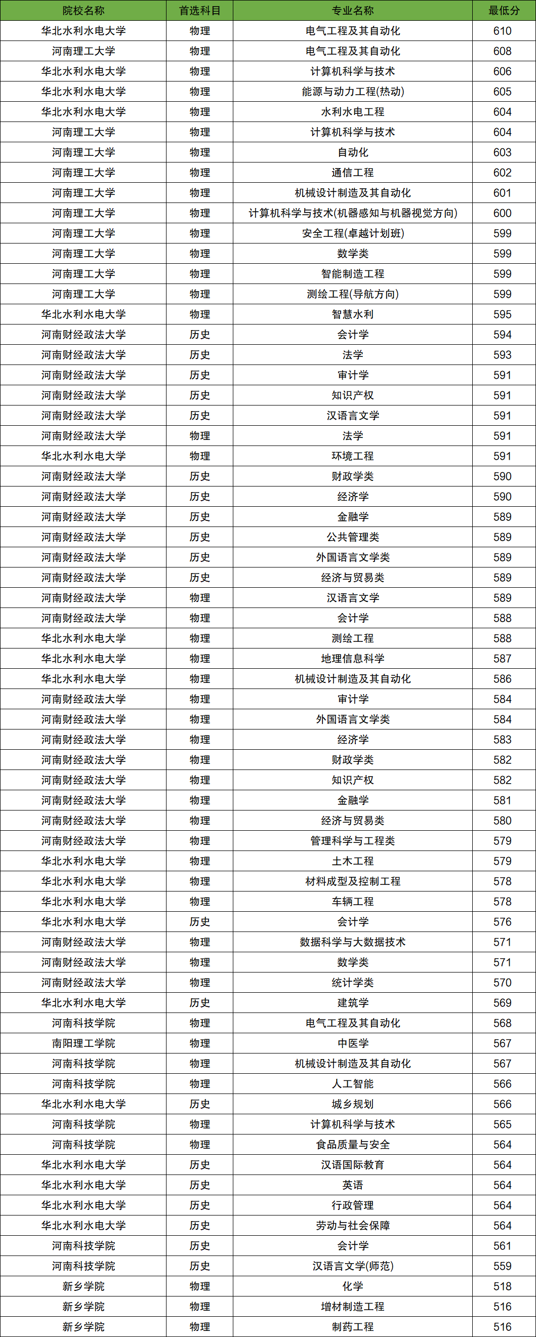 河南國家專項計劃大學名單及錄取分數(shù)線(滑動查看):