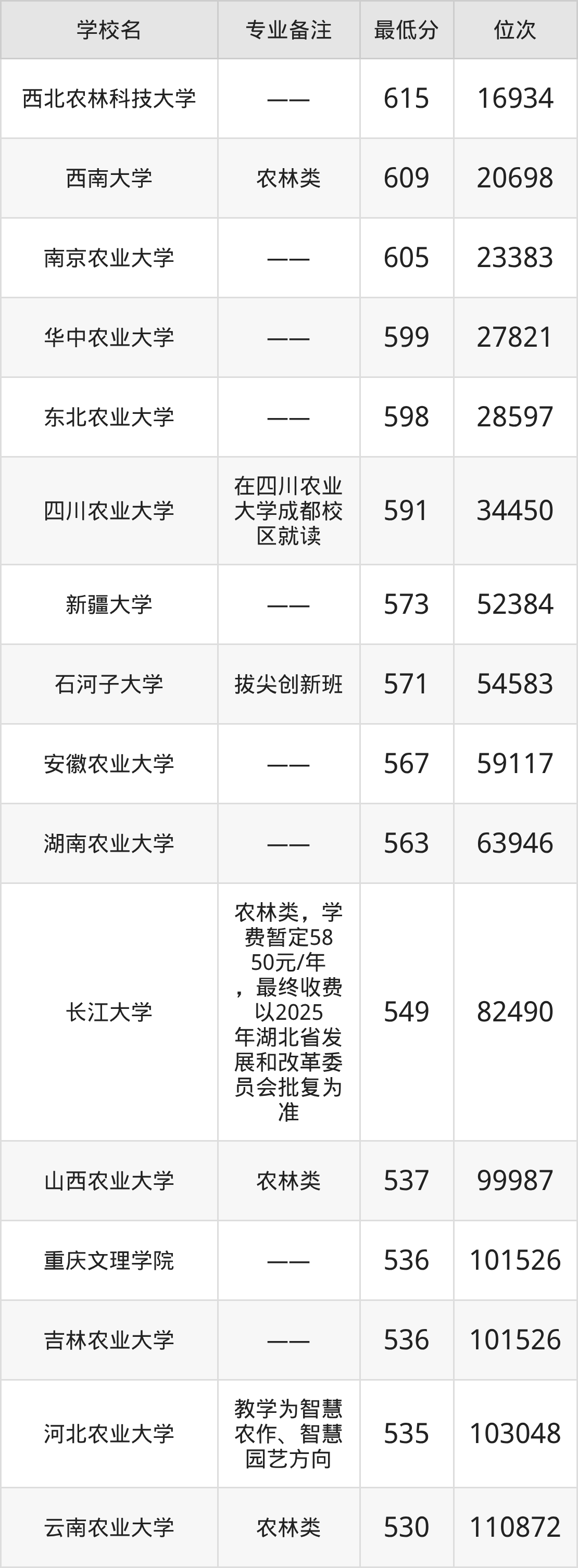 600分左右的智慧農(nóng)業(yè)大學(xué)有:華中農(nóng)業(yè)大學(xué)599分、東北農(nóng)業(yè)大學(xué)598分、南京農(nóng)業(yè)大學(xué)605分、西南大學(xué)609分。