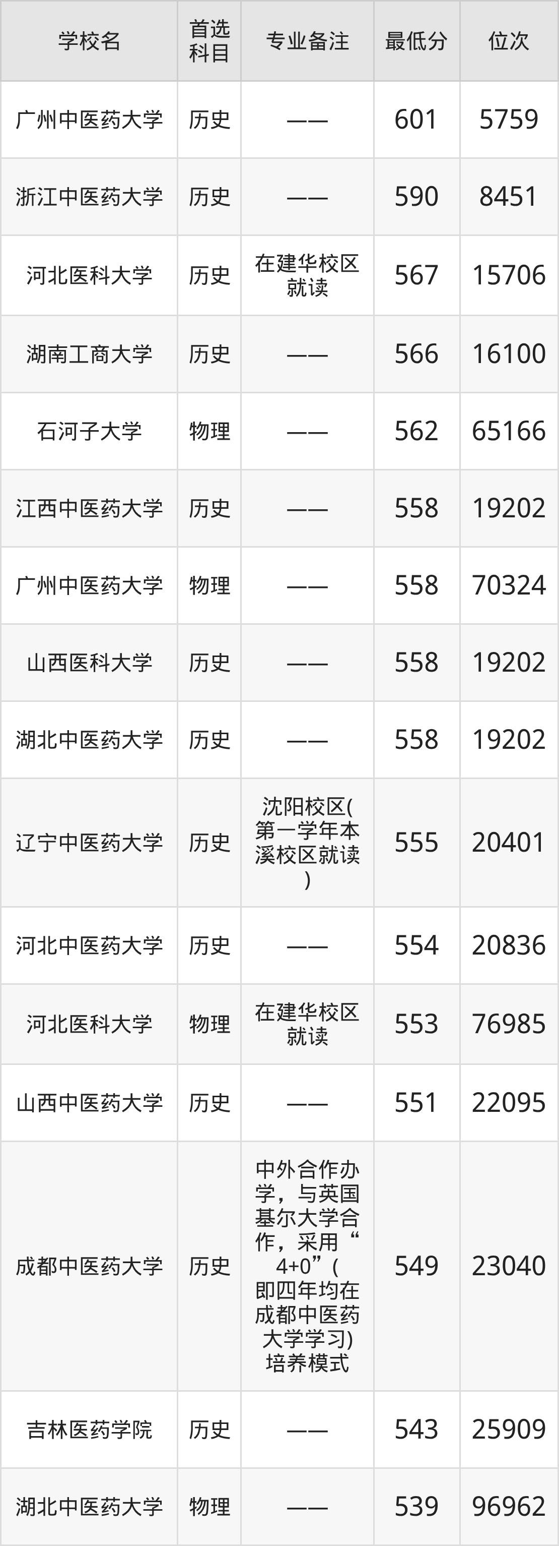 | 遼寧中醫(yī)藥大學(xué)杏 林學(xué)院 | 不提選科要求 |