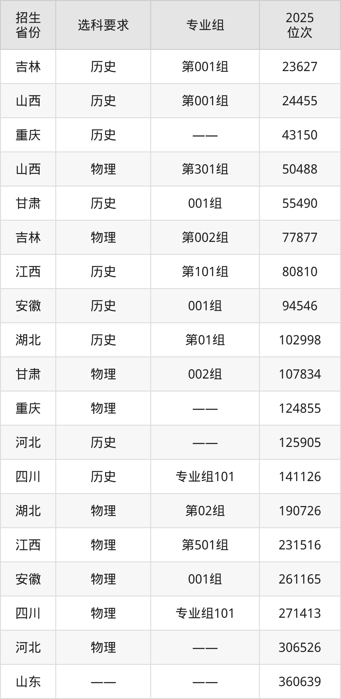 邯鄲職業(yè)技術(shù)學(xué)院2025年在全國各省的位次差異較大,最高位次是23627位(吉林歷史類)、最低位次是360639位(山東)。各省具體位次請看下圖: