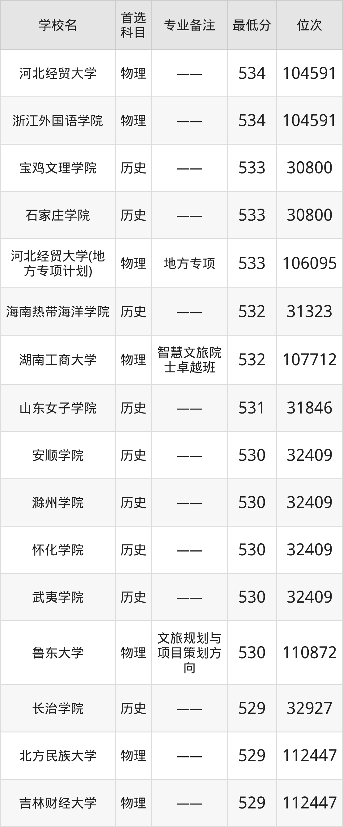 | 黑龍江工程學(xué)院昆 侖旅游學(xué)院 | 不提選科要求 |
