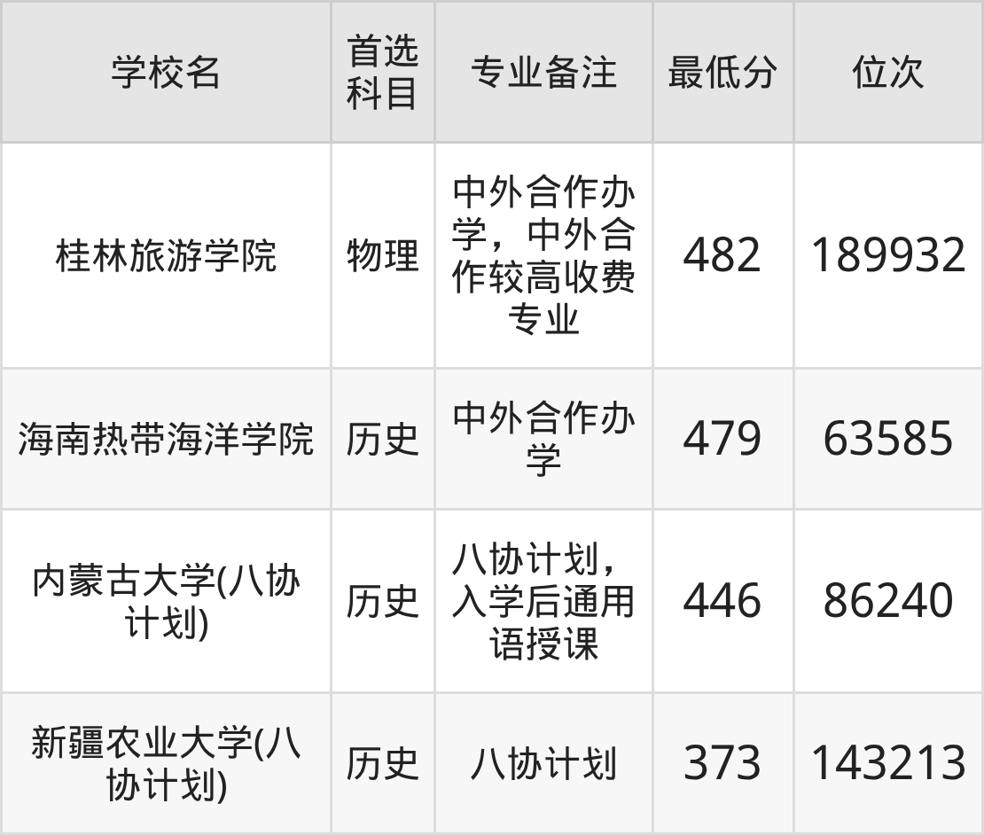 分?jǐn)?shù)線低于490分能上的旅游管理大學(xué)還有海南熱帶海洋學(xué)院(485分)、桂林旅游學(xué)院(482分)、海南熱帶海洋學(xué)院(479分)、內(nèi)蒙古大學(xué)(八協(xié)計(jì)劃)(446分)。