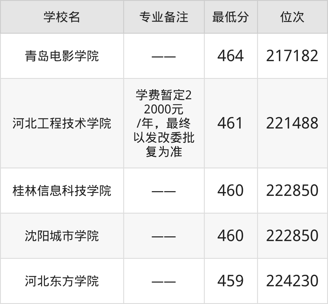 分?jǐn)?shù)線低于470分能上的虛擬現(xiàn)實(shí)技術(shù)大學(xué)還有青島電影學(xué)院(464分)、河北工程技術(shù)學(xué)院(461分)、桂林信息科技學(xué)院(460分)、沈陽城市學(xué)院(460分)。