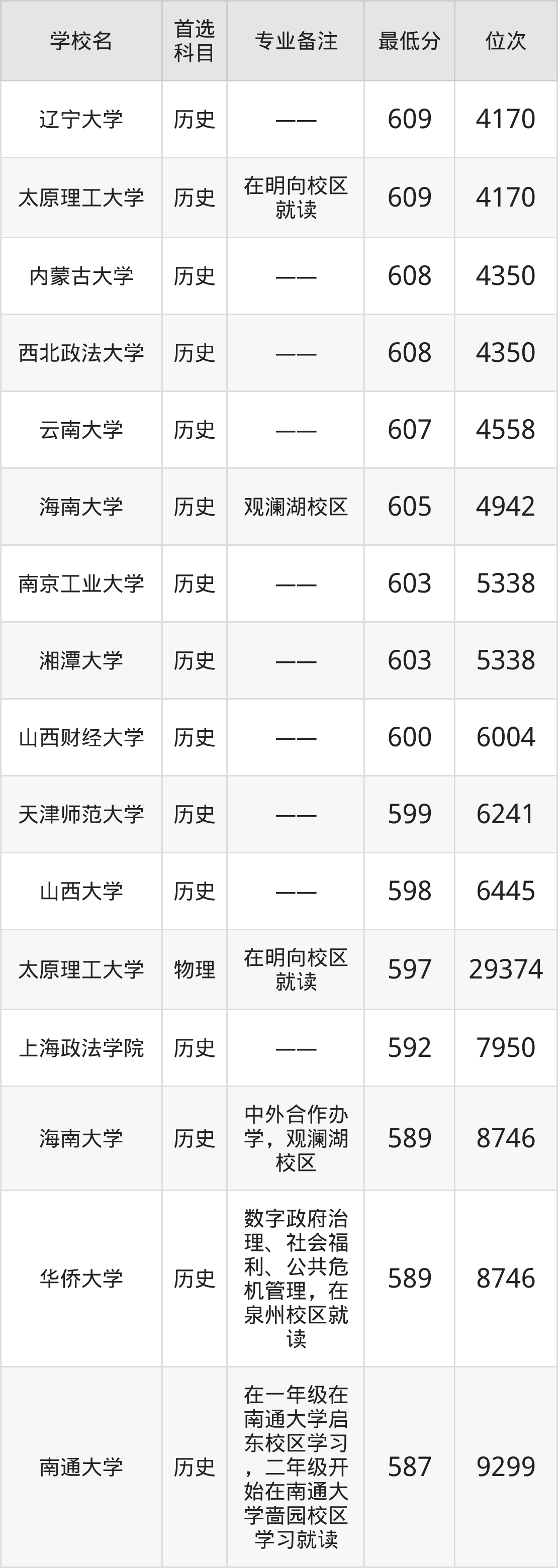 | 山西農(nóng)業(yè)大學(xué) | 歷史+政治 |