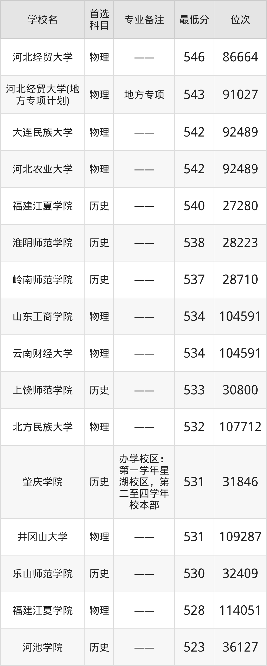 分?jǐn)?shù)線低于530分能上的行政管理大學(xué)還有樂山師范學(xué)院(530分)、福建江夏學(xué)院(528分)、河池學(xué)院(523分)、昌吉學(xué)院(521分)。