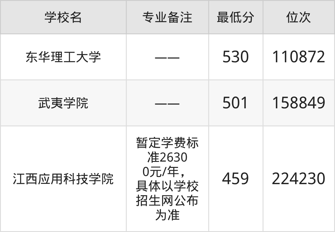 旅游地學(xué)與規(guī)劃工程分數(shù)線排名前三的院校分別是:530分的東華理工大學(xué)、501分的武夷學(xué)院、459分的江西應(yīng)用科技學(xué)院(暫定學(xué)費標準26300元/年,具體以學(xué)校招生網(wǎng)公布為準)。