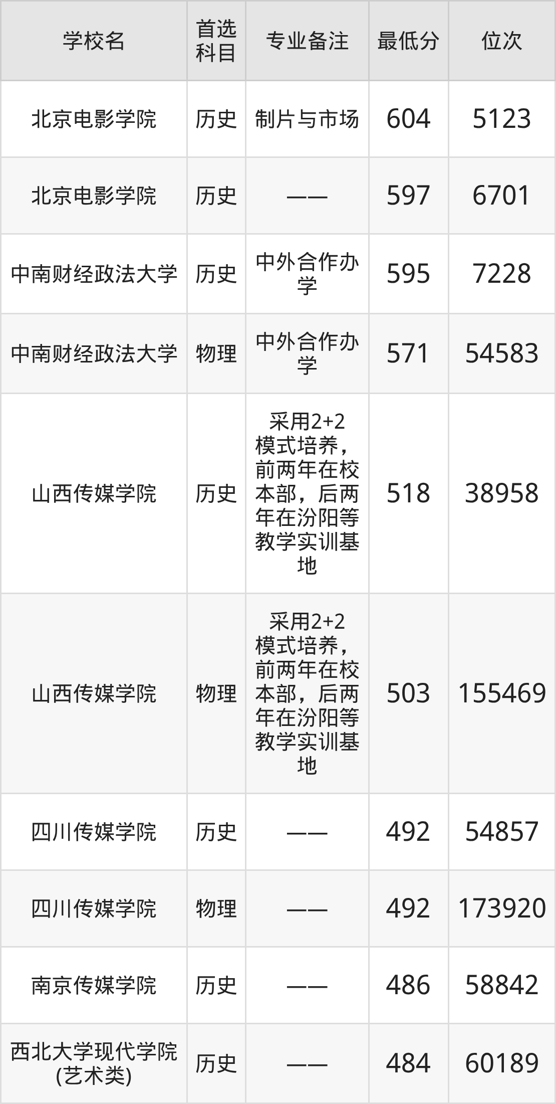 三、電影學(xué)專業(yè)錄取分數(shù)線