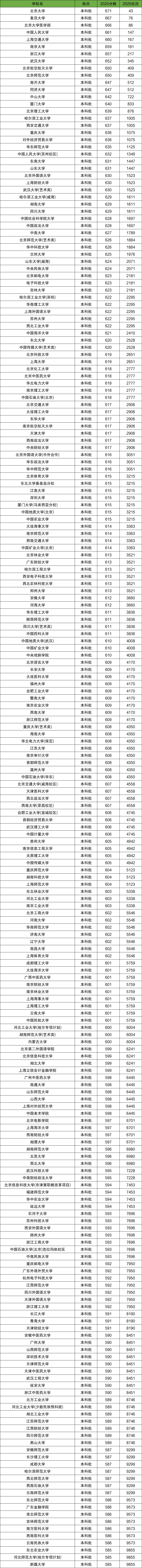 根據(jù)國內(nèi)各大學(xué)在河北省歷史類的招生分數(shù)可知,河北省高考成績在1萬名之前的歷史考生能上的學(xué)校有219所,對應(yīng)的分數(shù)為679分~585分。