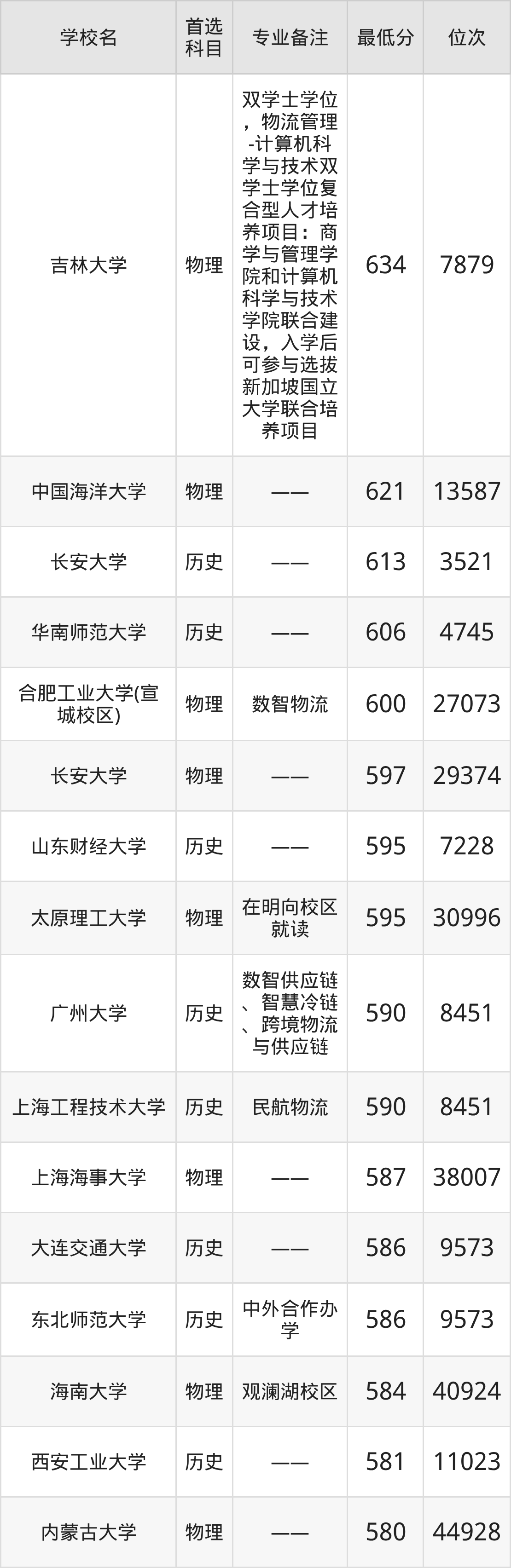 三、物流管理專業(yè)錄取分?jǐn)?shù)線