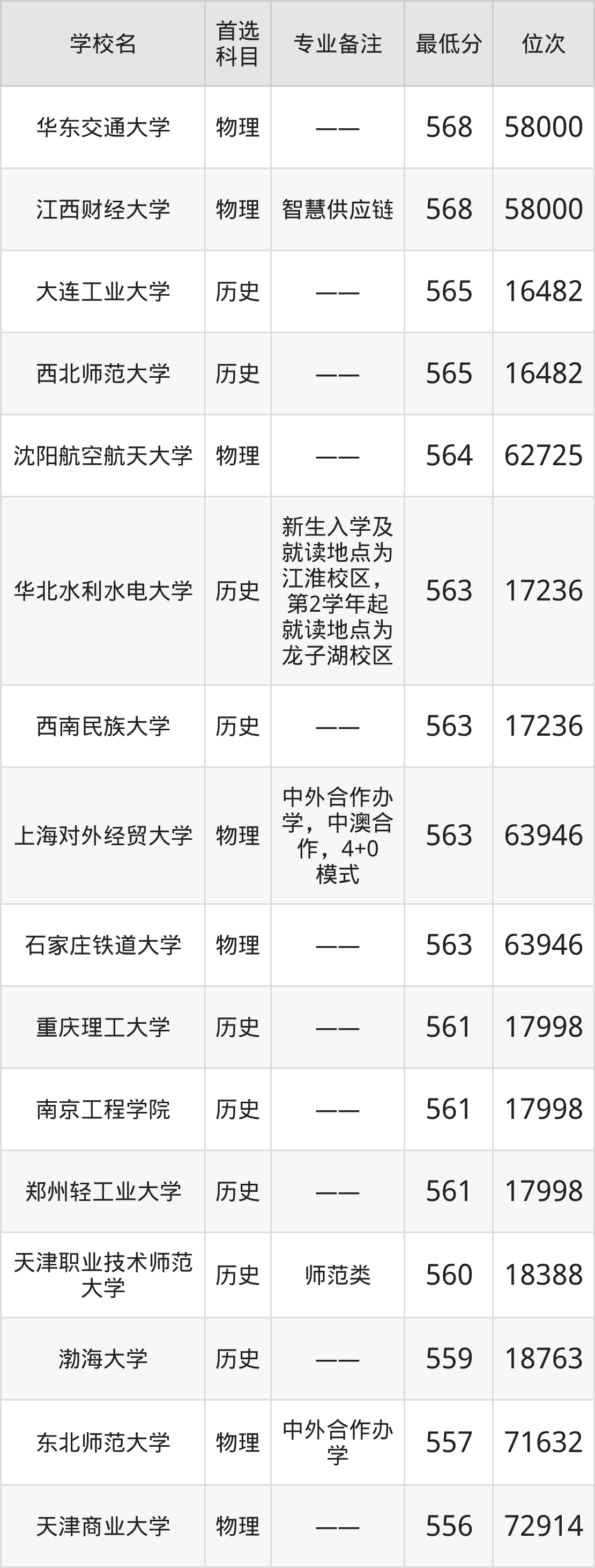 | 華東交通大學(xué) | 不提選科要求 |