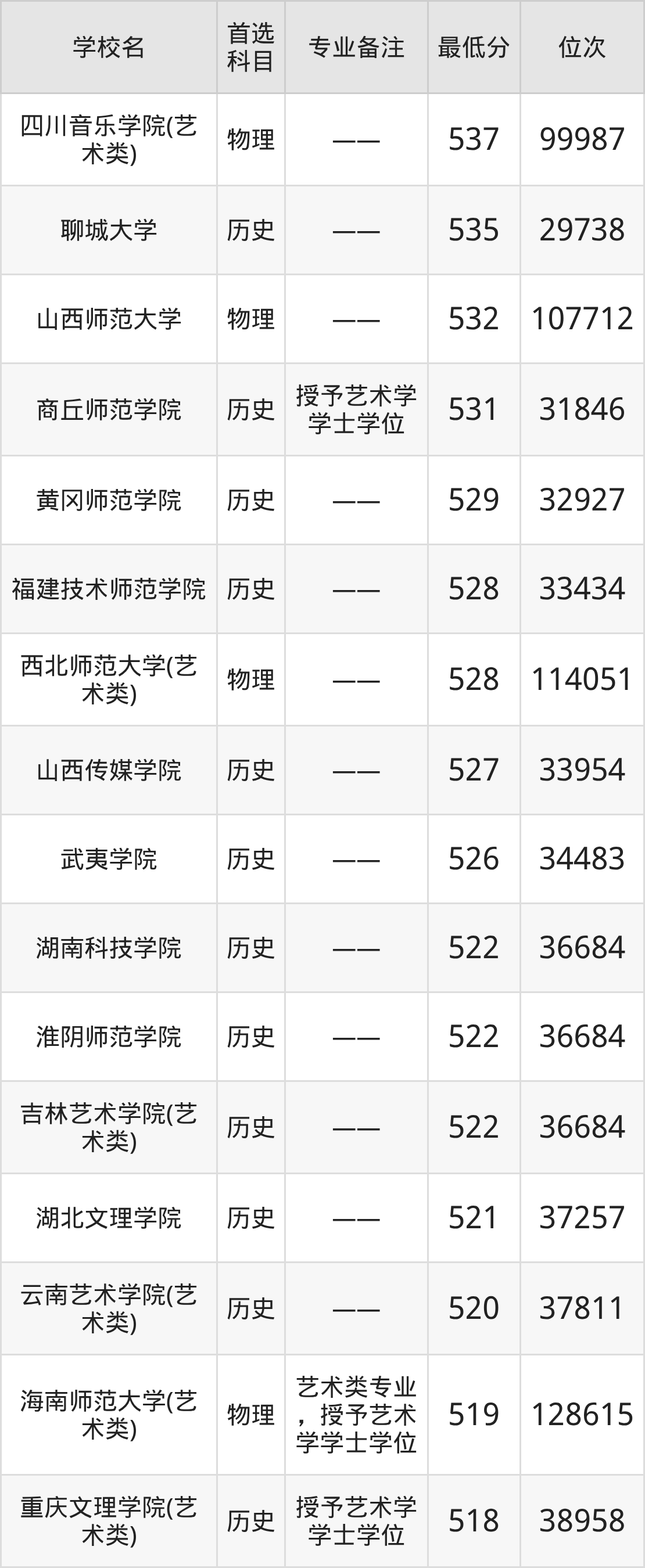 | 山東藝術(shù)學(xué)院 | 不提選科要求 |