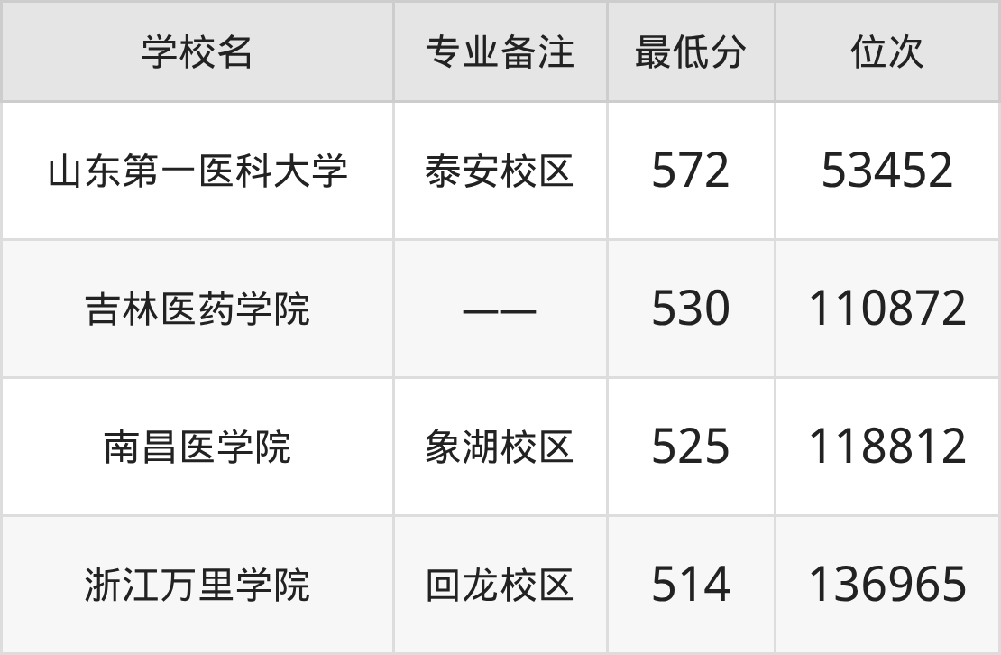 院校舉例:牡丹江醫(yī)科大學(xué)、上海健康醫(yī)學(xué)院、浙江萬里學(xué)院、貴州醫(yī)科大學(xué)。