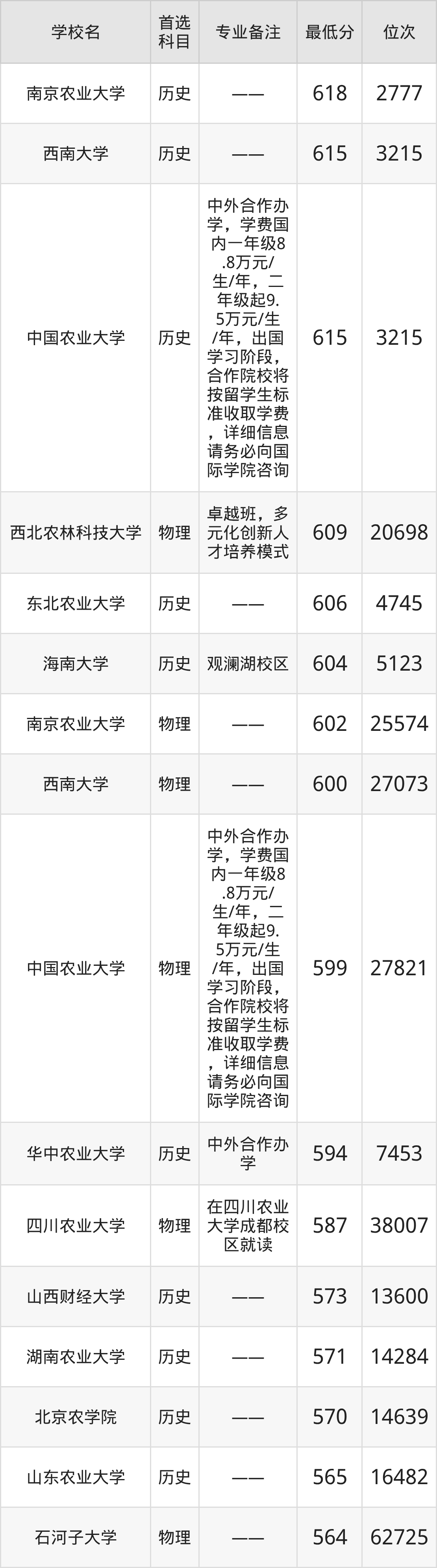 | 湖南農(nóng)業(yè)大學(xué) | 不提選科要求 |