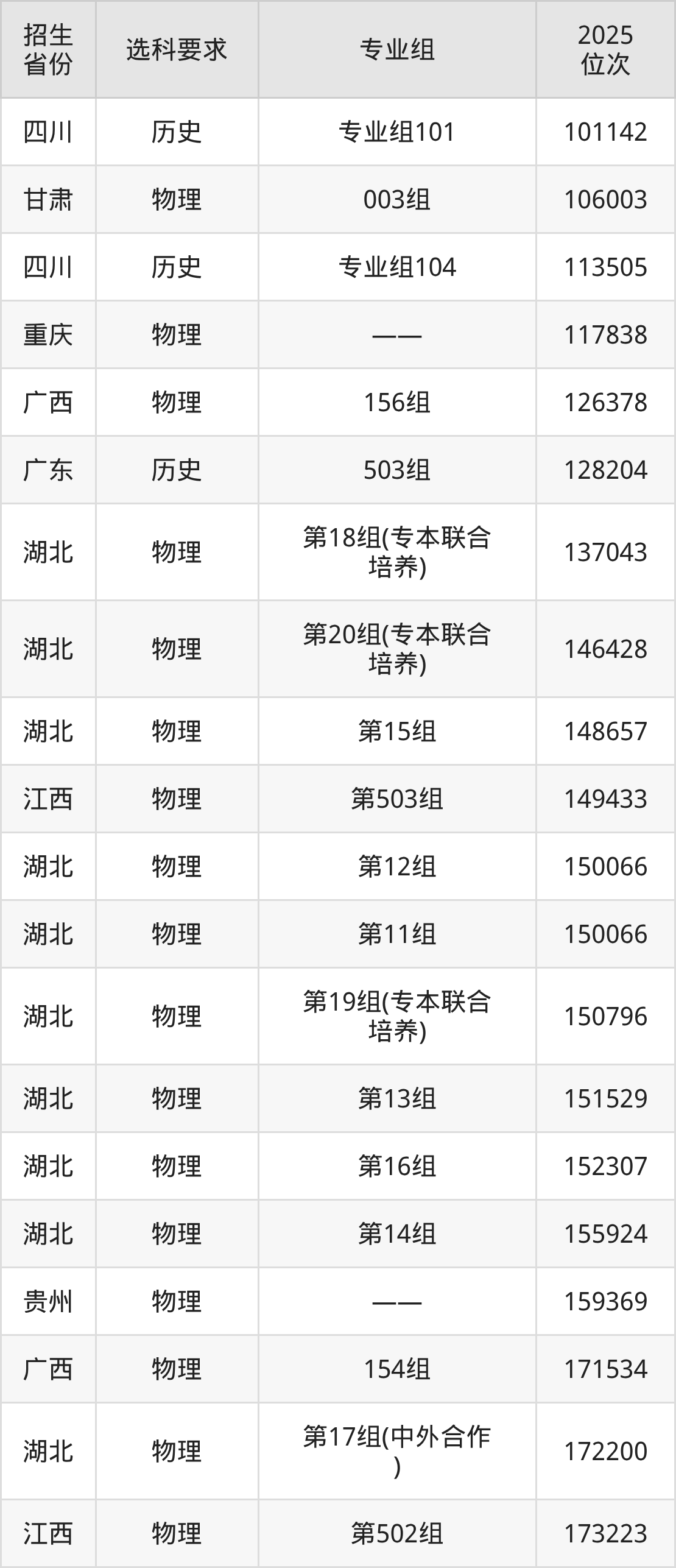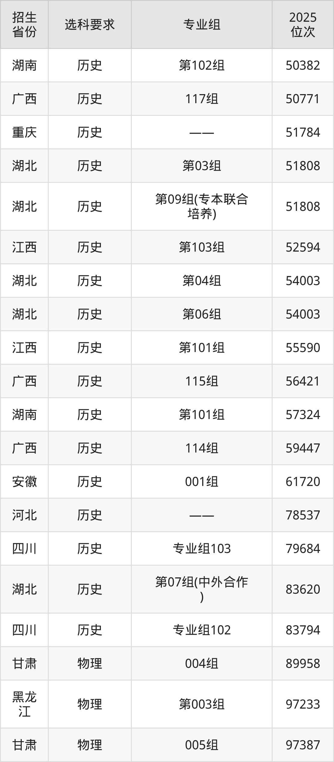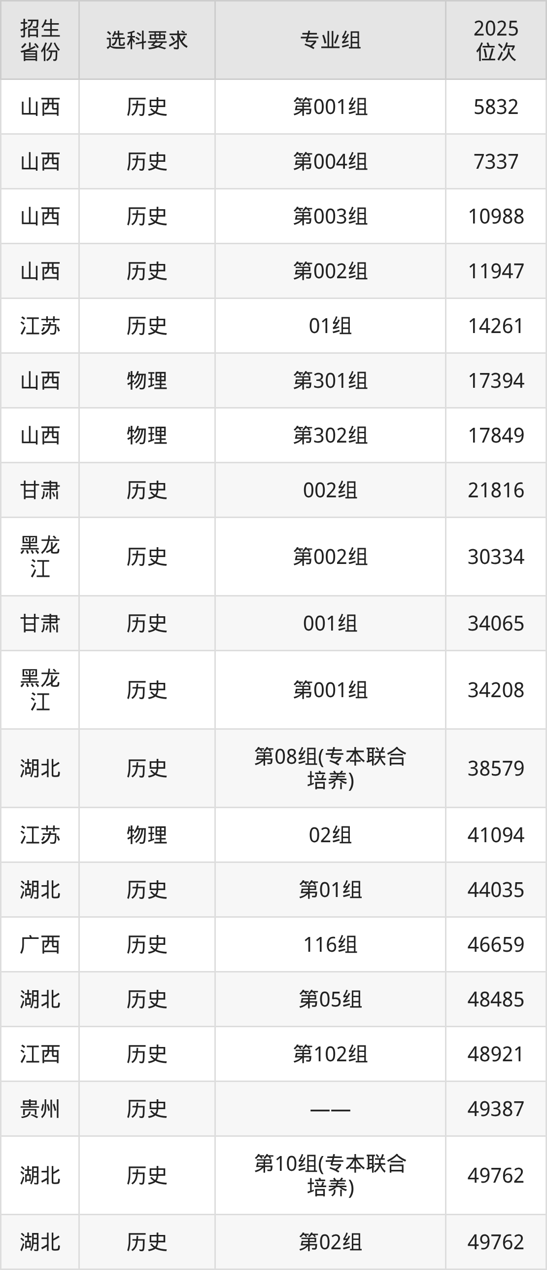 武漢城市職業(yè)學(xué)院2025年在全國(guó)各省的位次差異較大,最高位次是5832位(山西歷史類)、最低位次是358369位(山東)。各省具體位次請(qǐng)看下圖: