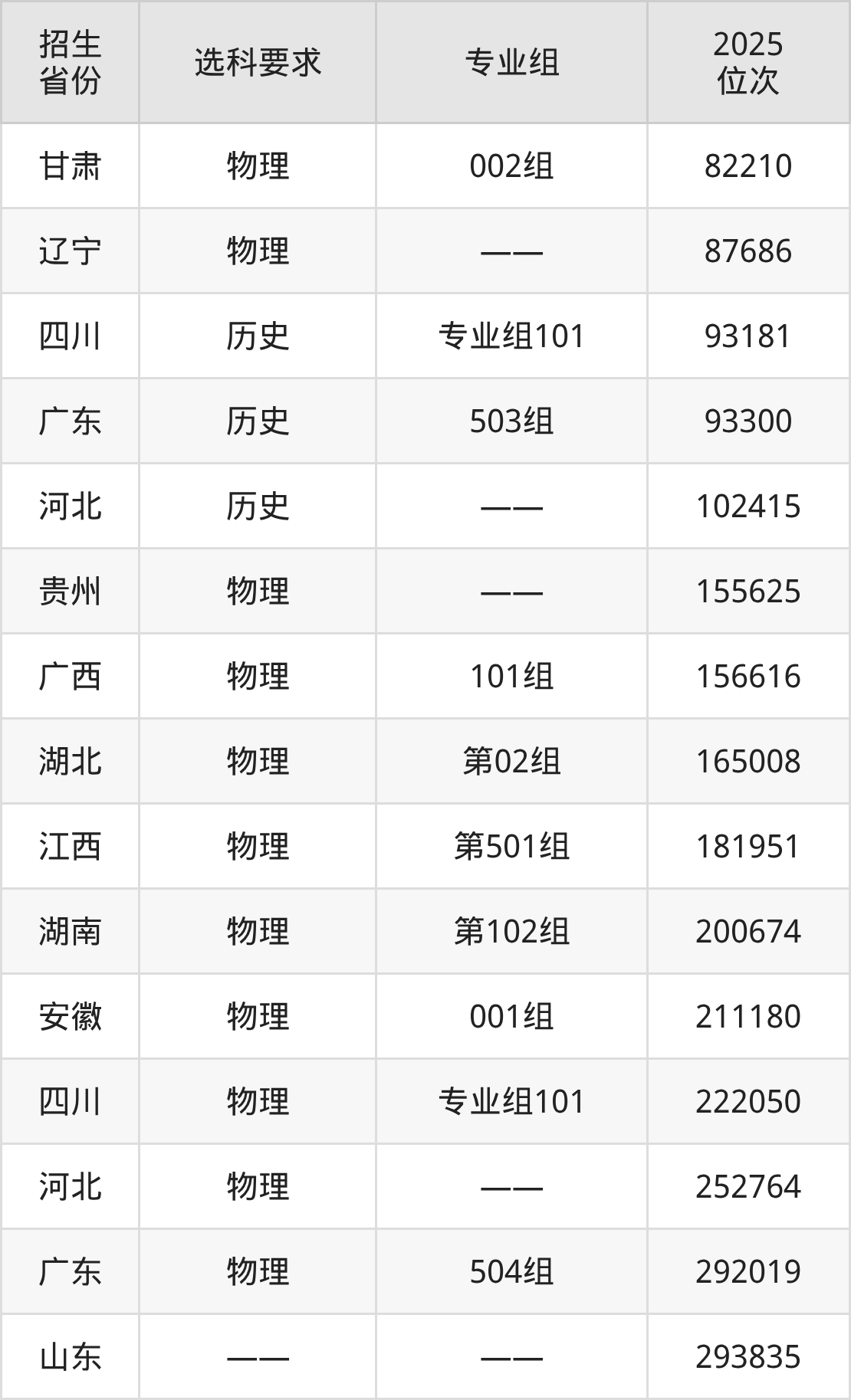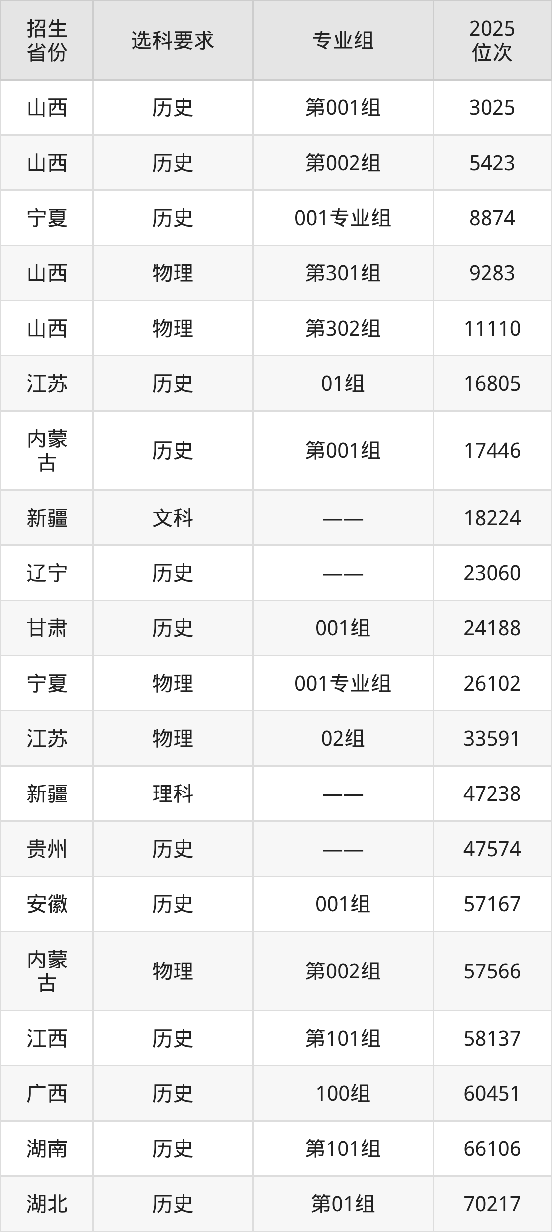 河北軌道運輸職業(yè)技術(shù)學(xué)院2025年在全國各省的位次差異較大,最高位次是3025位(山西歷史類)、最低位次是293835位(山東)。各省具體位次請看下圖:
