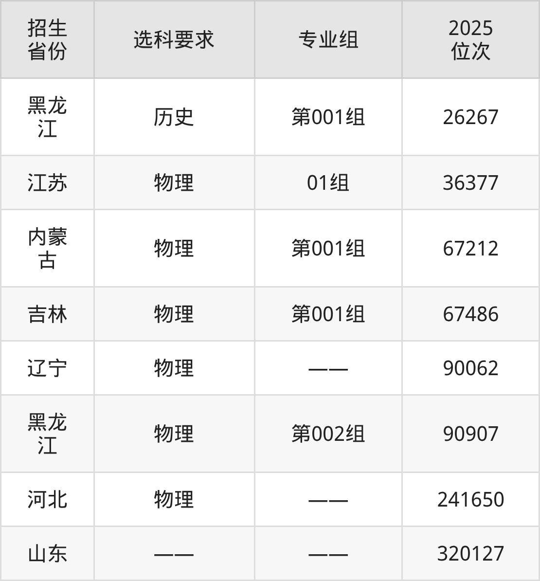 哈爾濱電力職業(yè)技術(shù)學(xué)院2025年在全國(guó)各省的位次差異較大,最高位次是26267位(黑龍江歷史類)、最低位次是320127位(山東)。各省具體位次請(qǐng)看下圖: