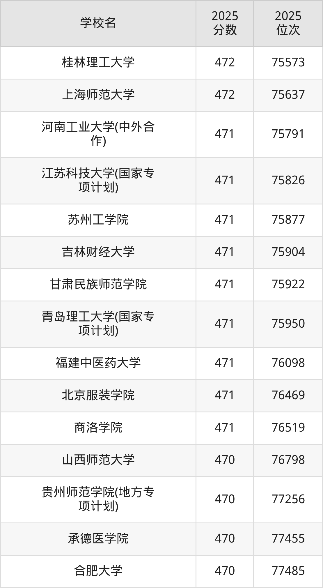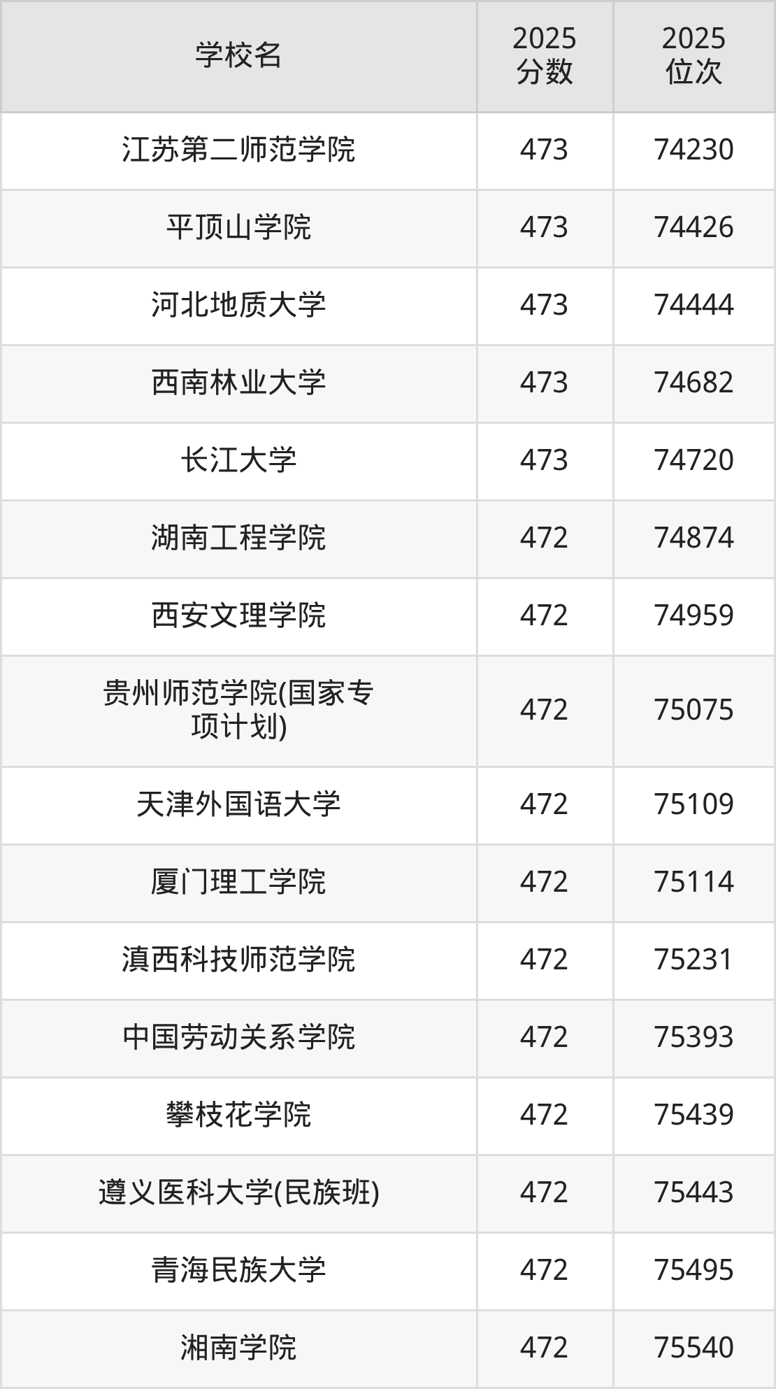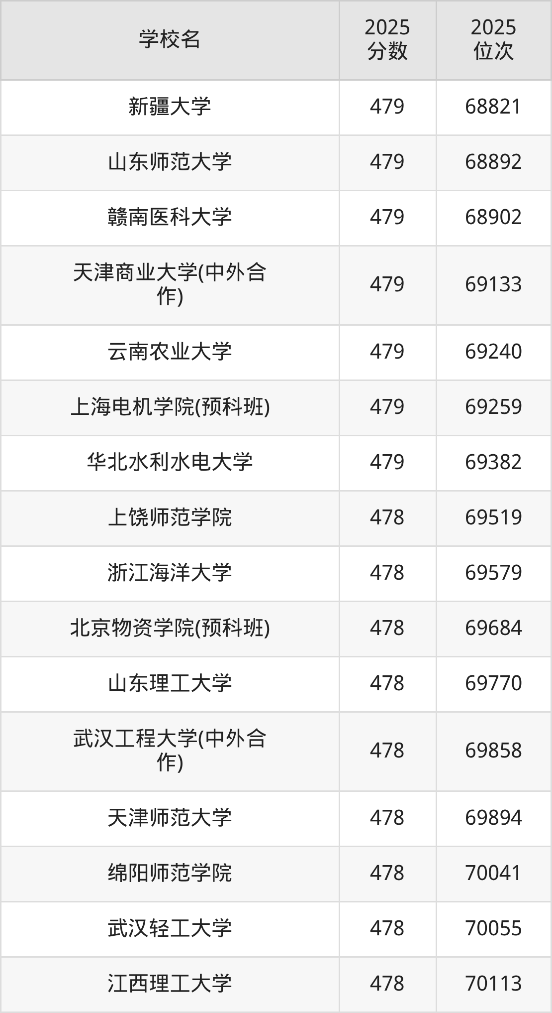 | 學(xué)校名 | 2025 分?jǐn)?shù) | 2025 位次 |