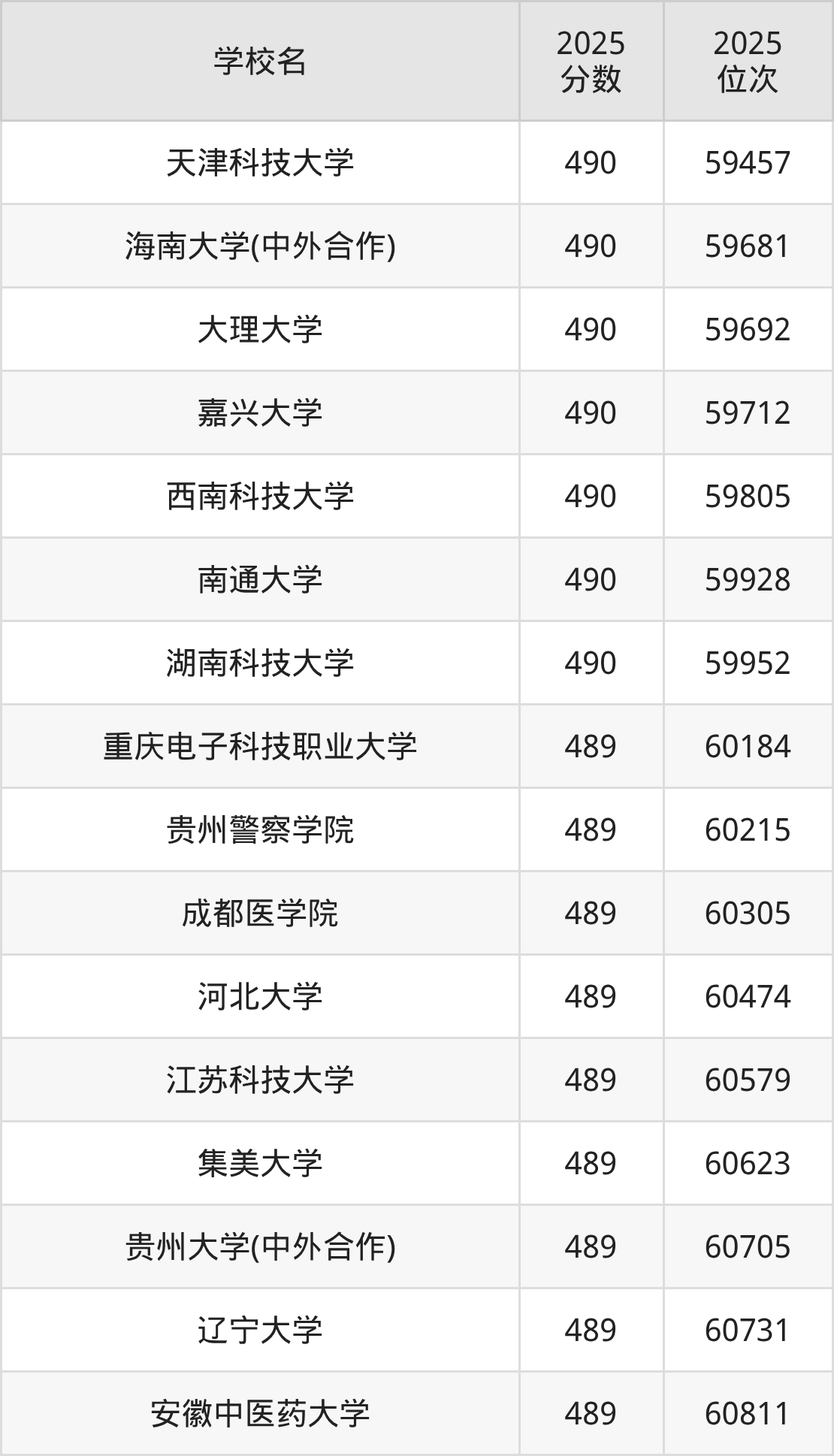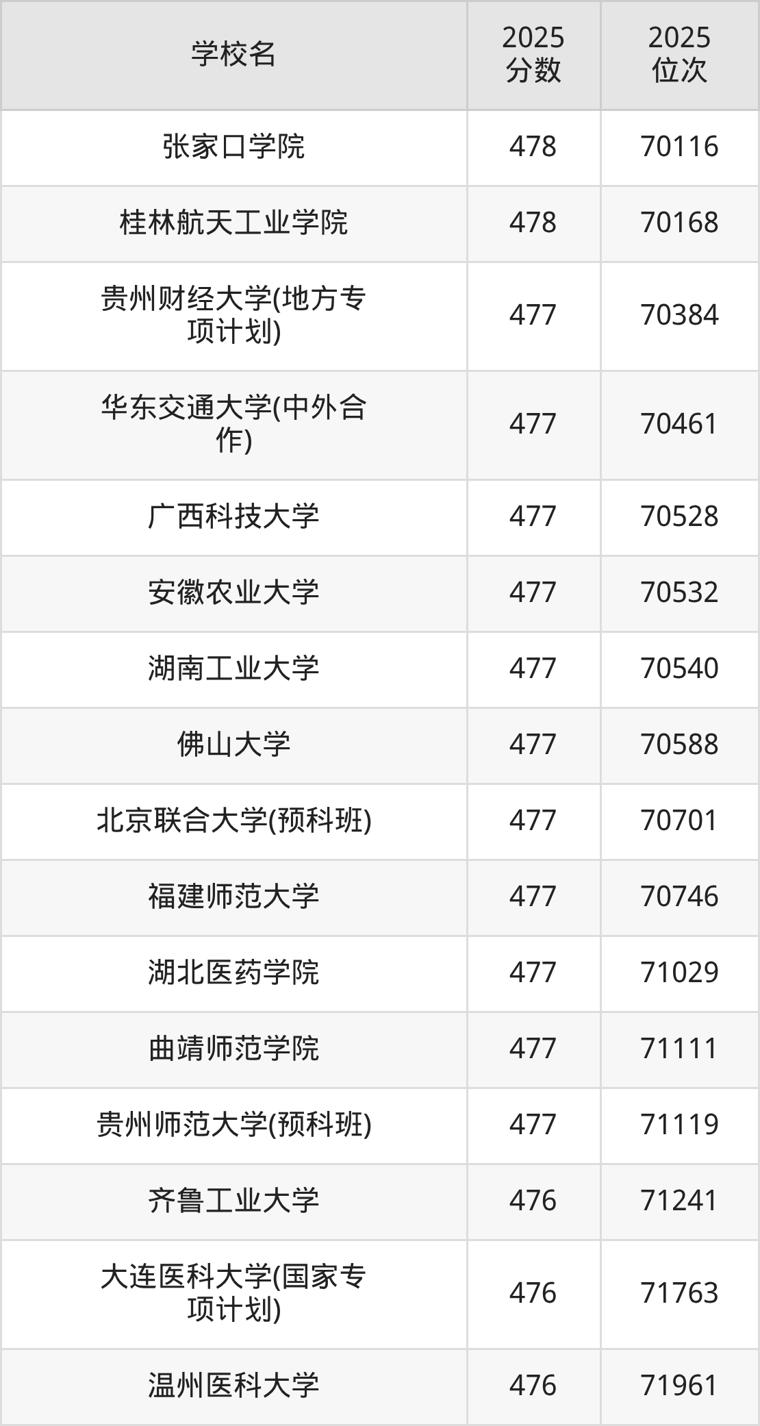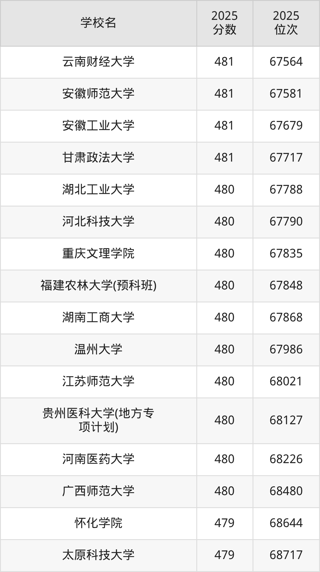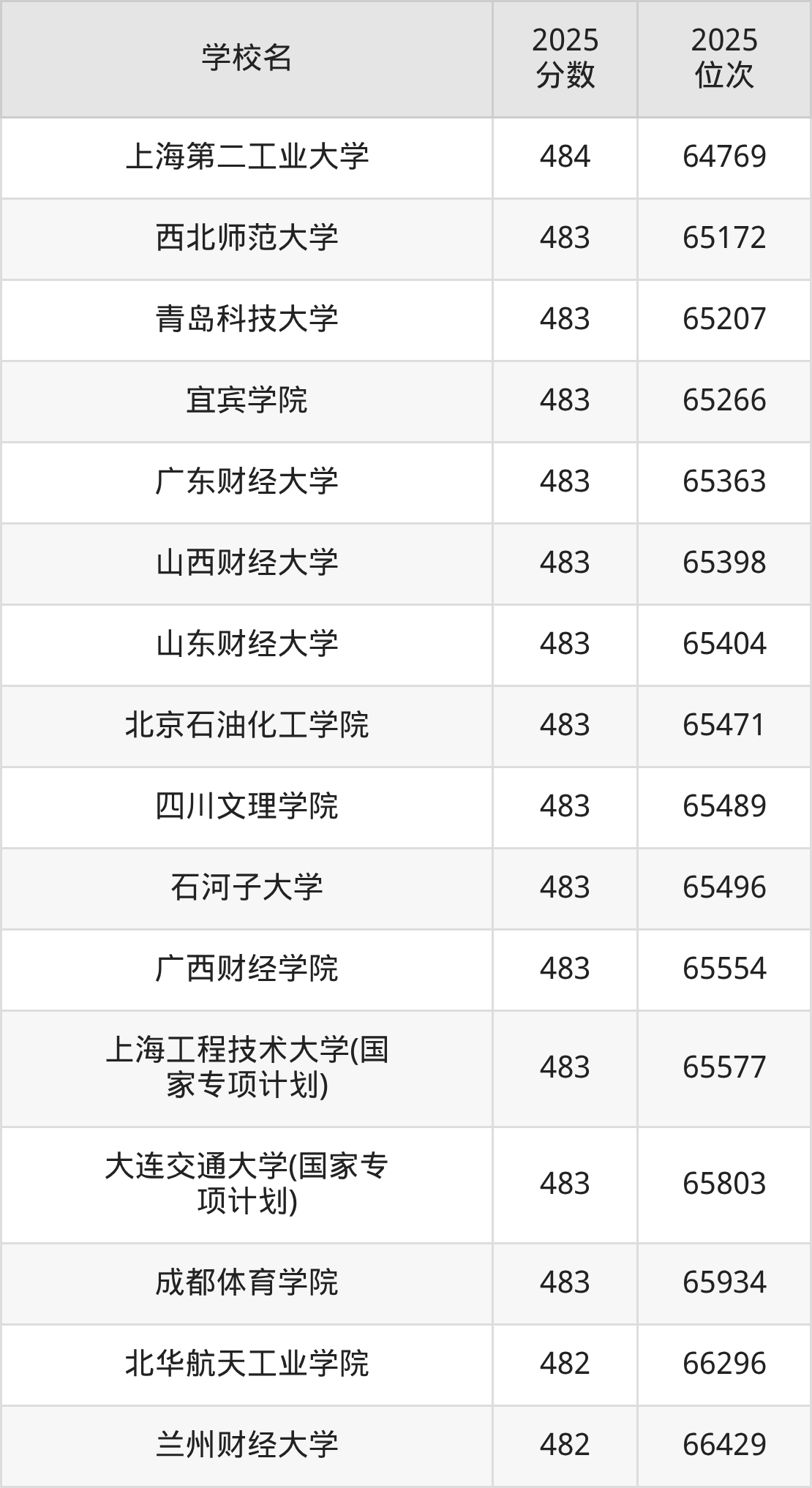 | 學(xué)校名 | 2025 分?jǐn)?shù) | 2025 位次 |