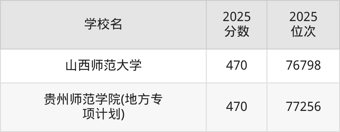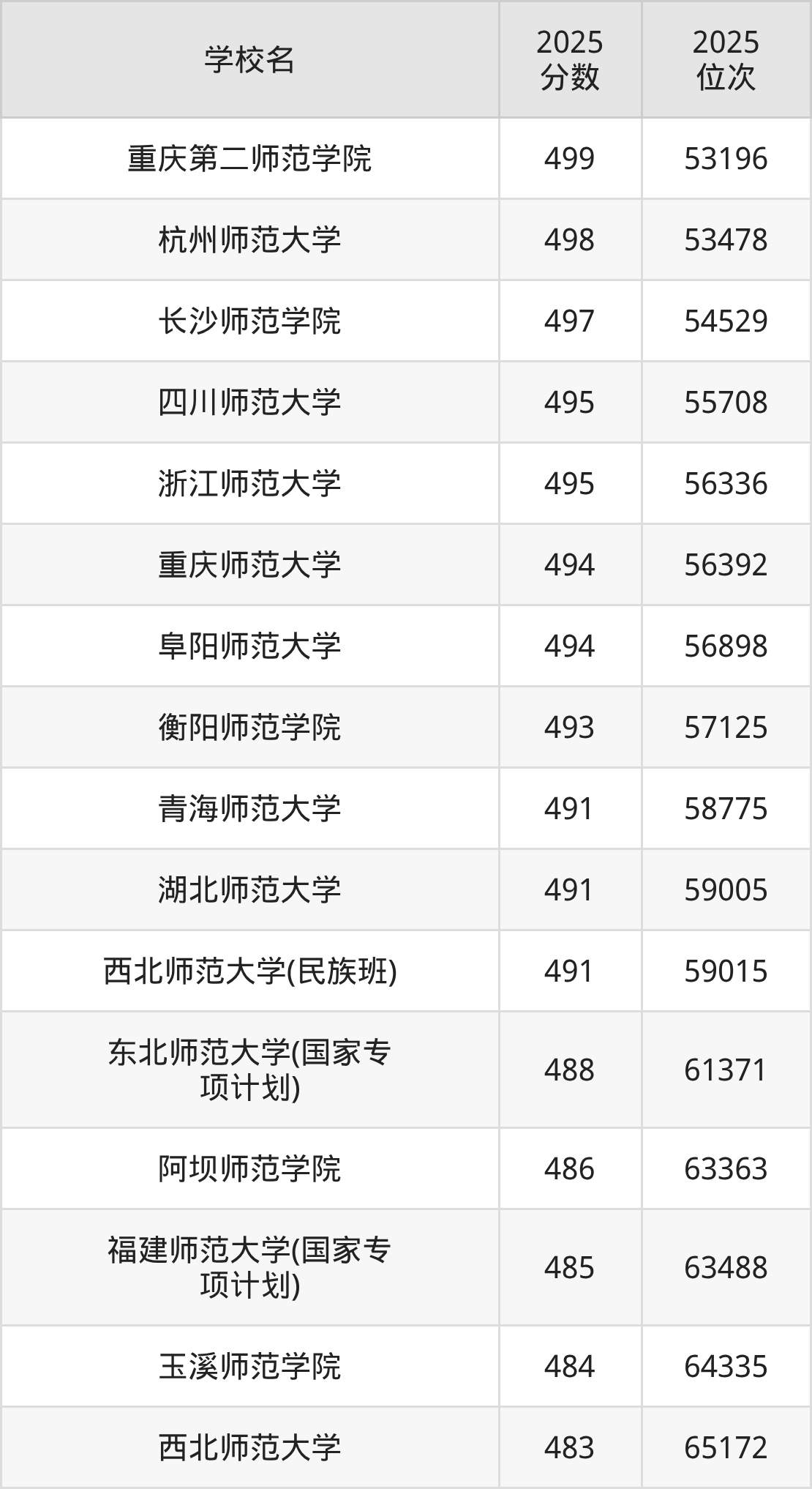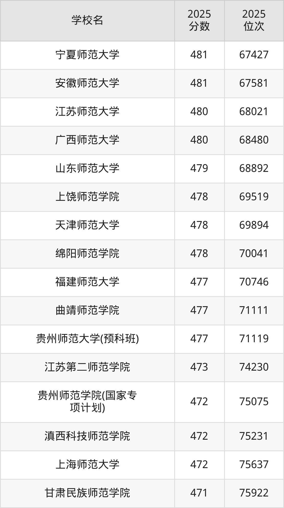 | 學(xué)校名 | 2025 分?jǐn)?shù) | 2025 位次 |