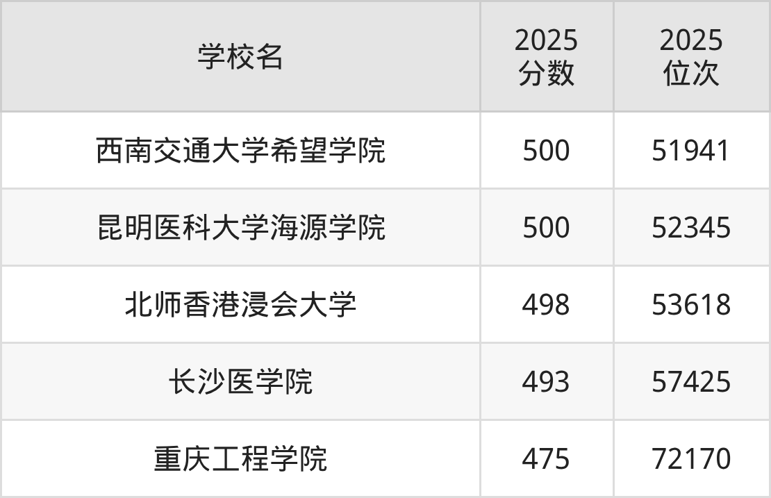 | 學(xué)校名 | 2025 分?jǐn)?shù) | 2025 位次 |