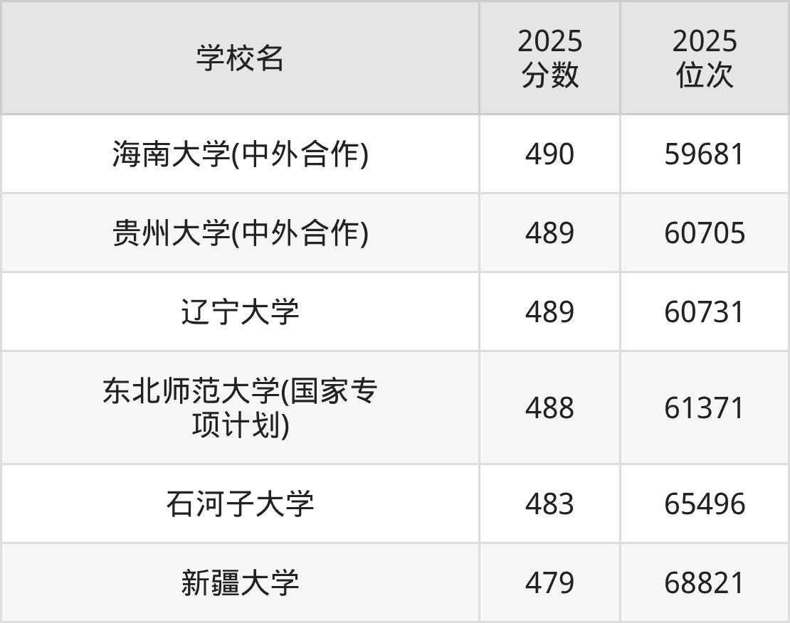 | 學(xué)校名 | 2025 分?jǐn)?shù) | 2025 位次 |
