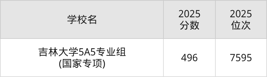物理類470到500分的大學(xué)中分?jǐn)?shù)對(duì)應(yīng)位次最低的是吉林大學(xué)5A5專業(yè)組(國(guó)家專項(xiàng)),2025年最低分496分,對(duì)應(yīng)最低位次是7595名。