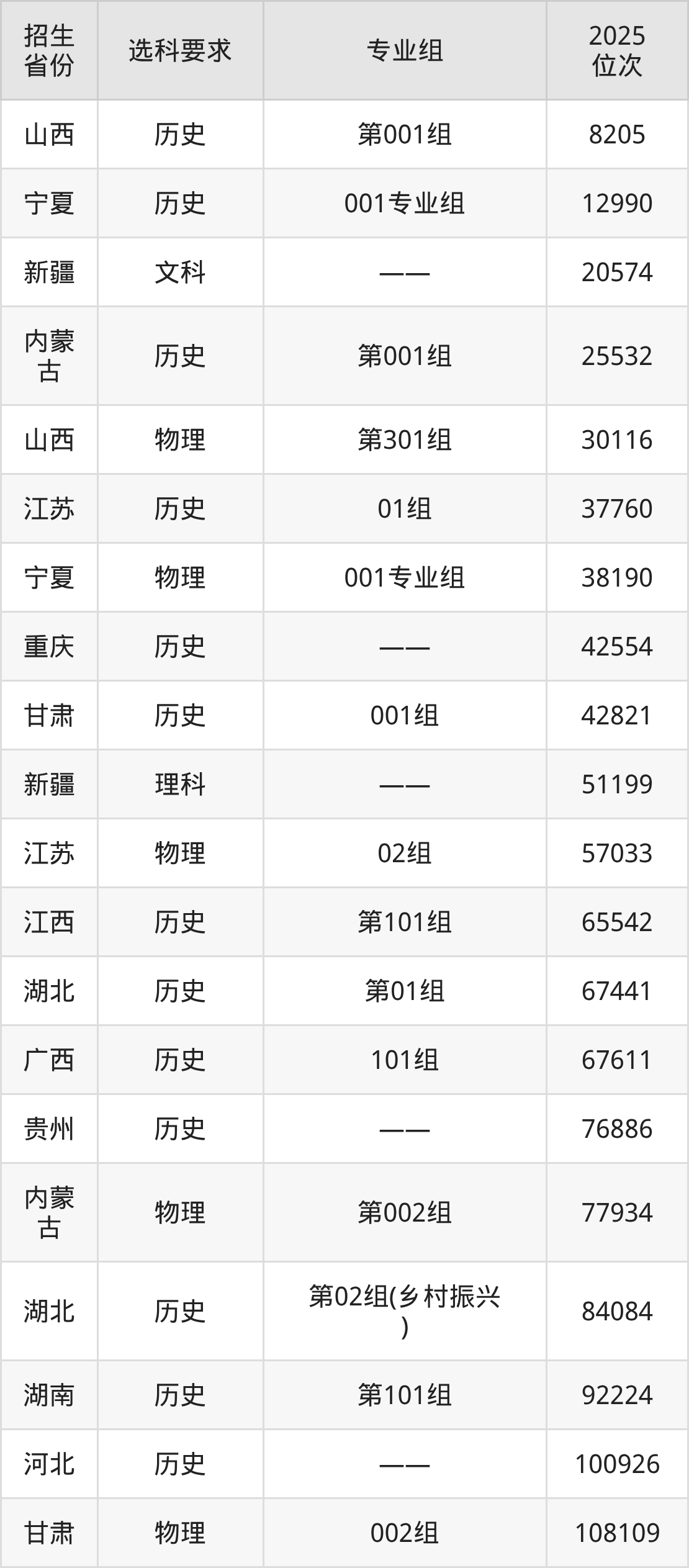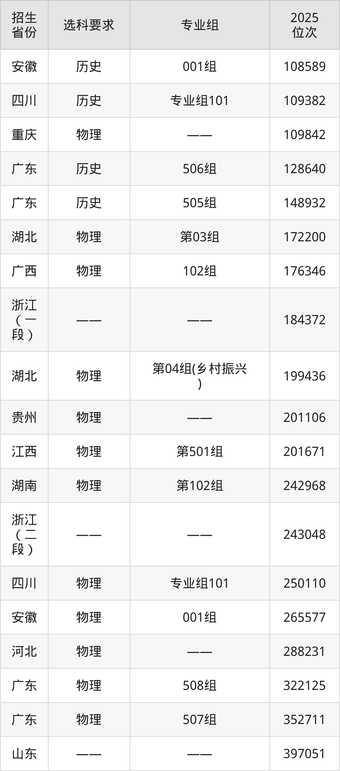 湖北國(guó)土資源職業(yè)學(xué)院2025年在全國(guó)各省的位次差異較大,最高位次是8205位(山西歷史類)、最低位次是397051位(山東)。各省具體位次請(qǐng)看下圖: