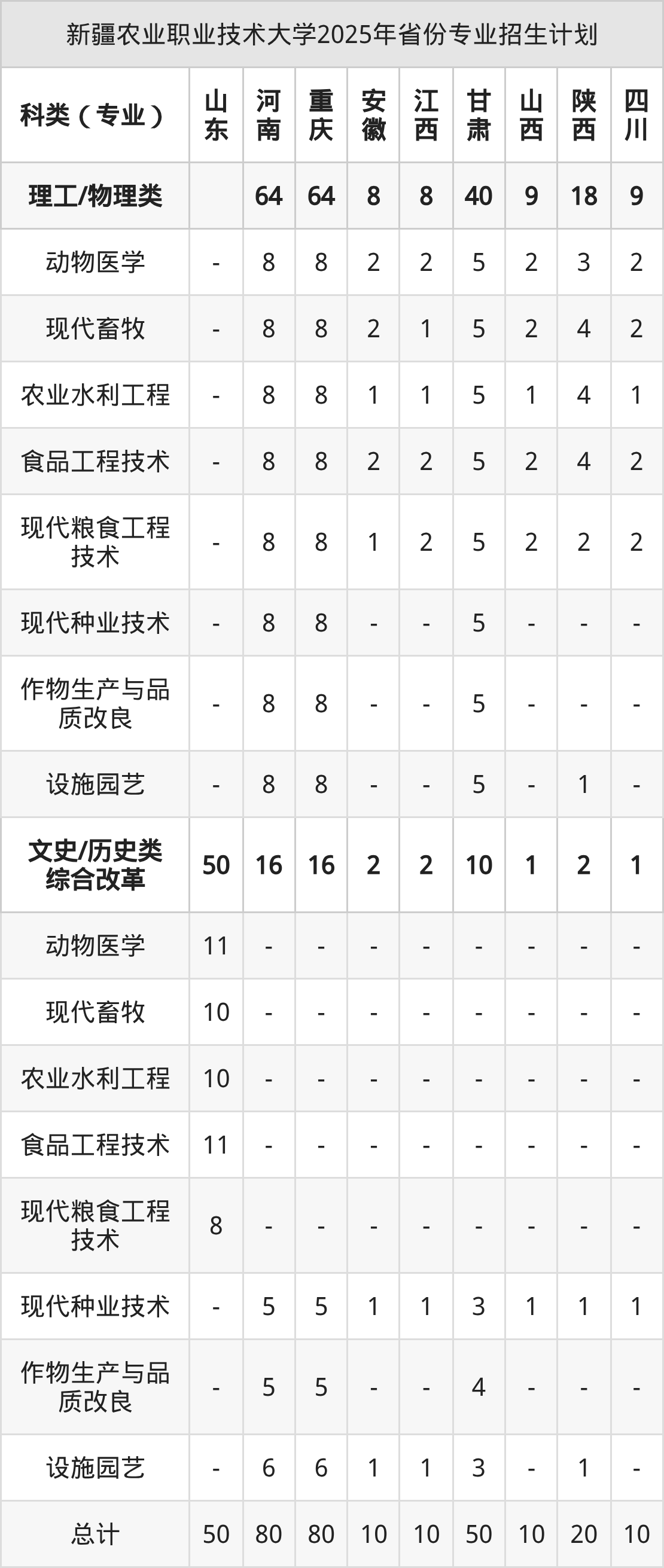 而各省份的招生計劃數(shù)為河南80人,重慶80人,甘肅50人,陜西20人,湖南10人等。