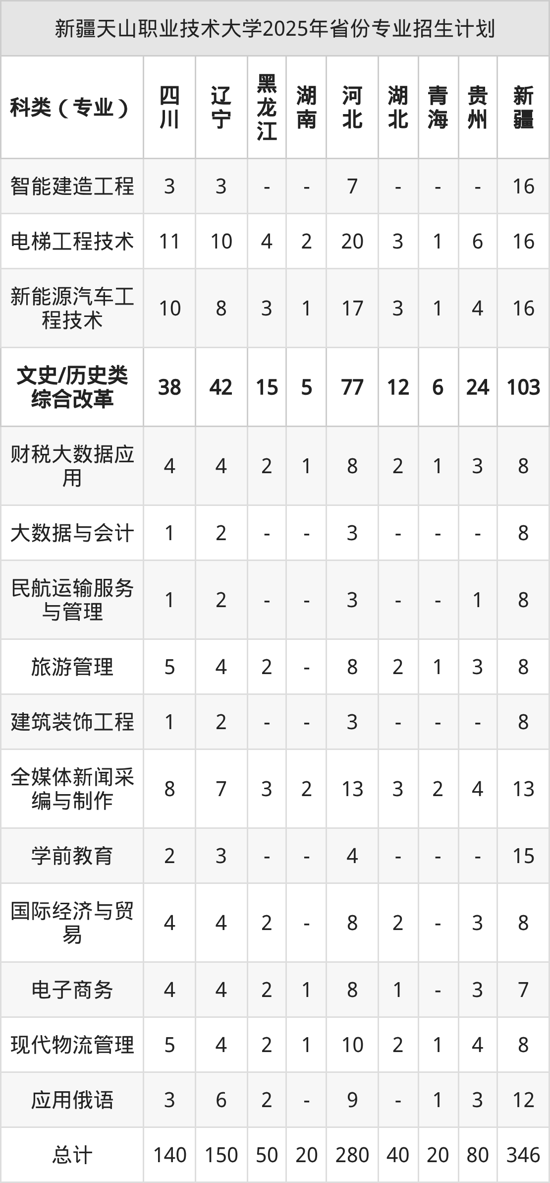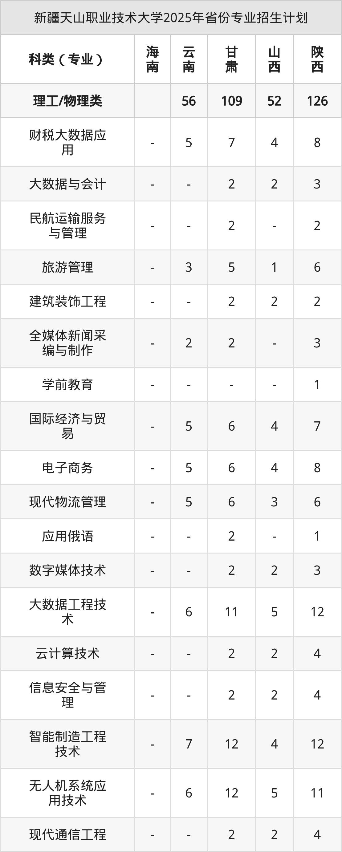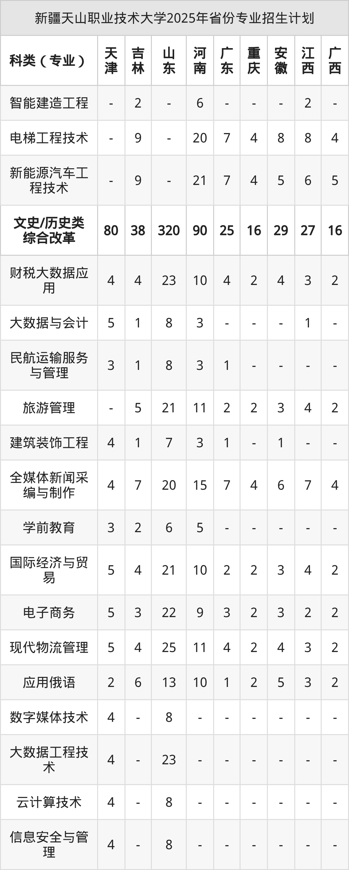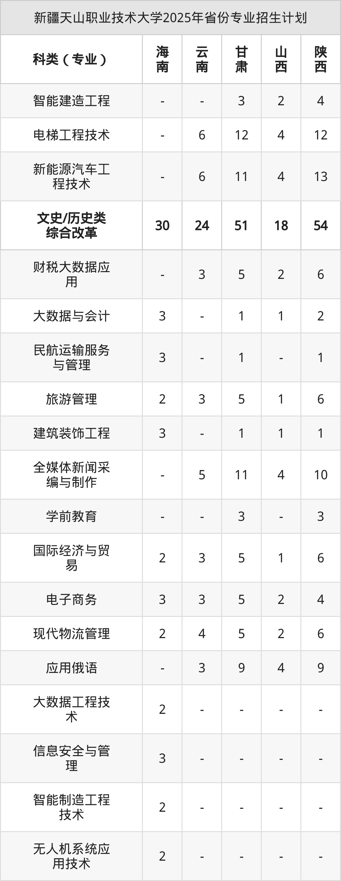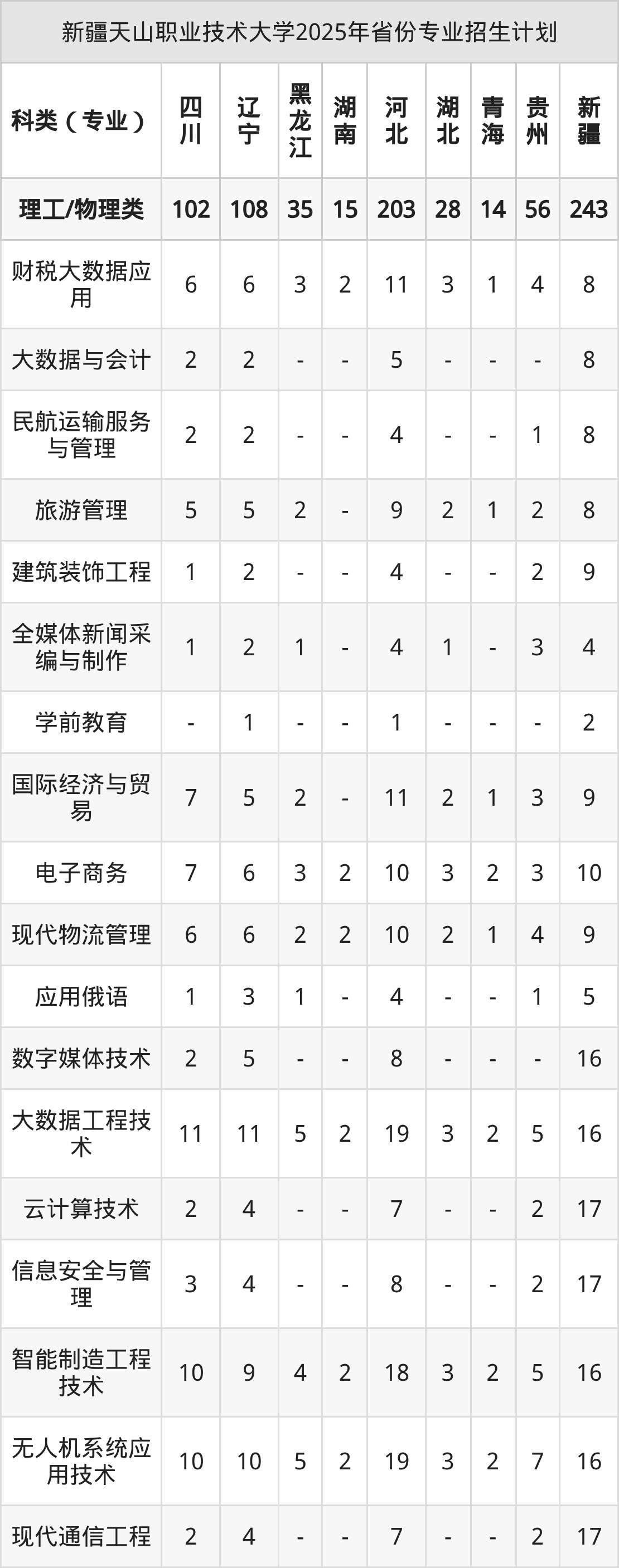 2026年新疆天山職業(yè)技術(shù)大學(xué)本科招生計(jì)劃待公布,下面附上2025年數(shù)據(jù),暫供參考: