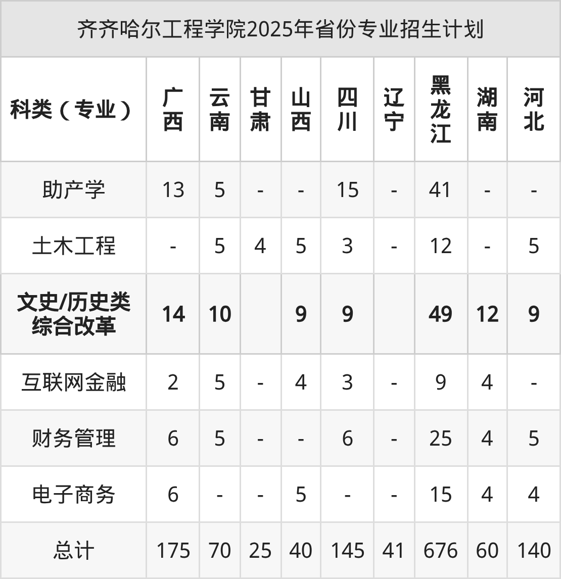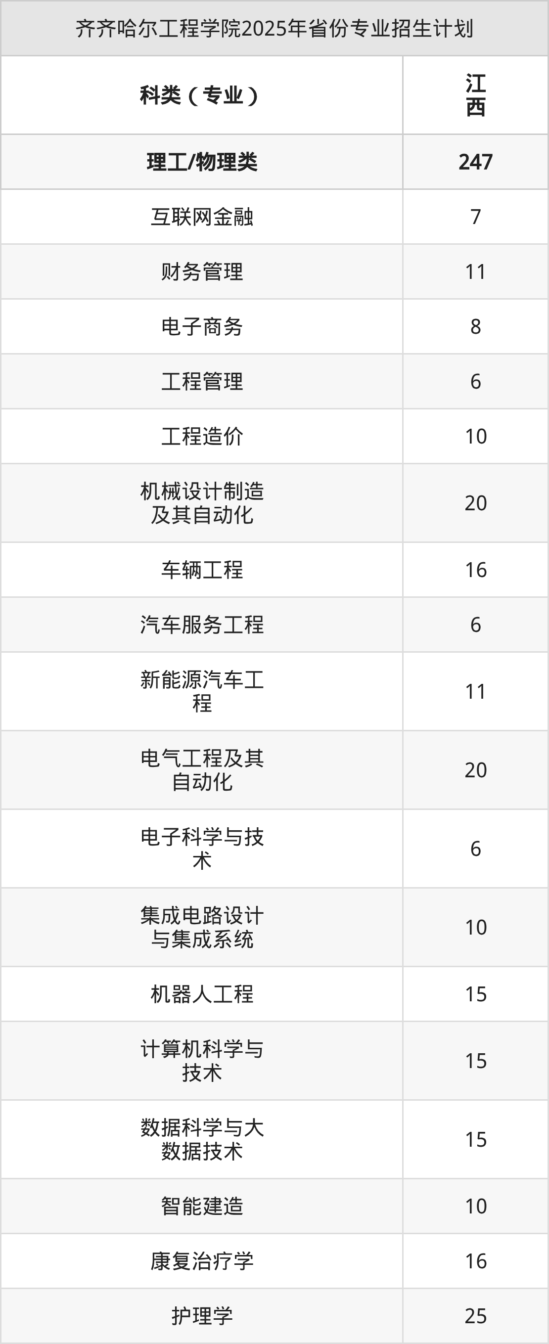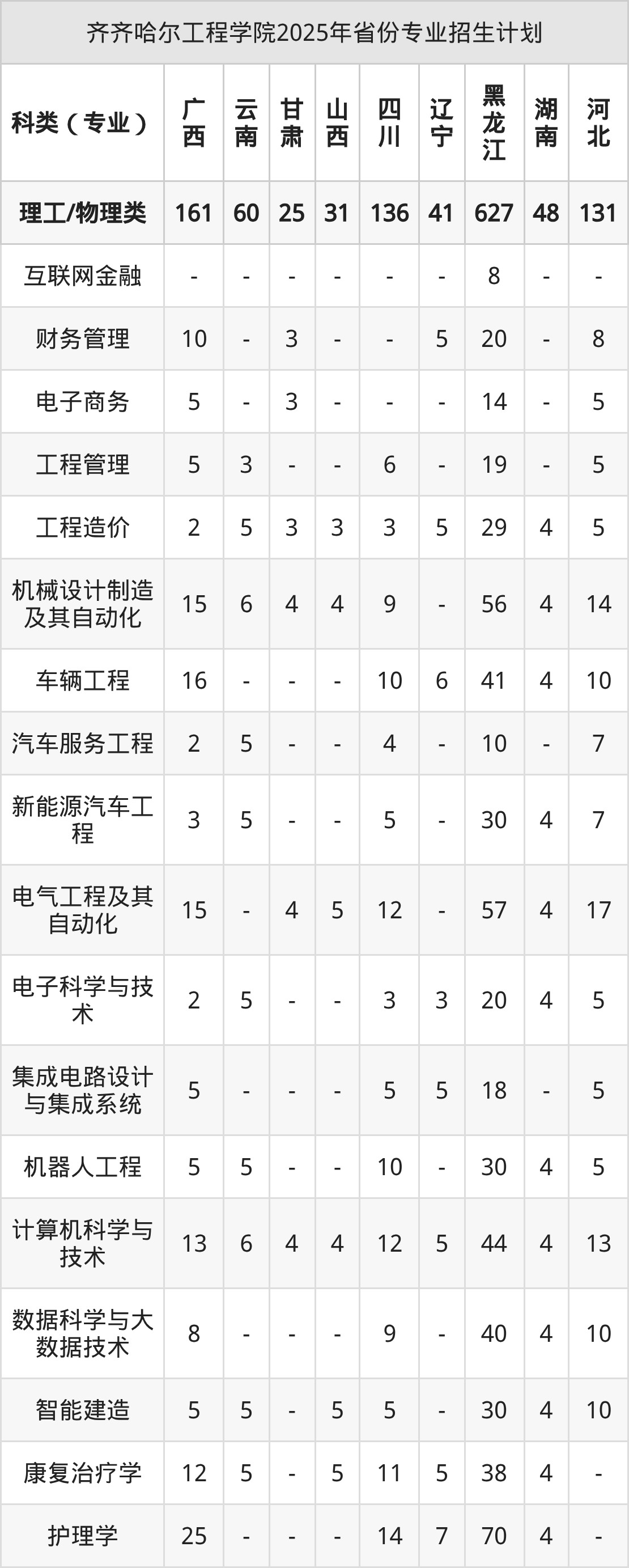 2026年齊齊哈爾工程學院本科招生計劃待公布,下面附上2025年數(shù)據(jù),暫供參考: