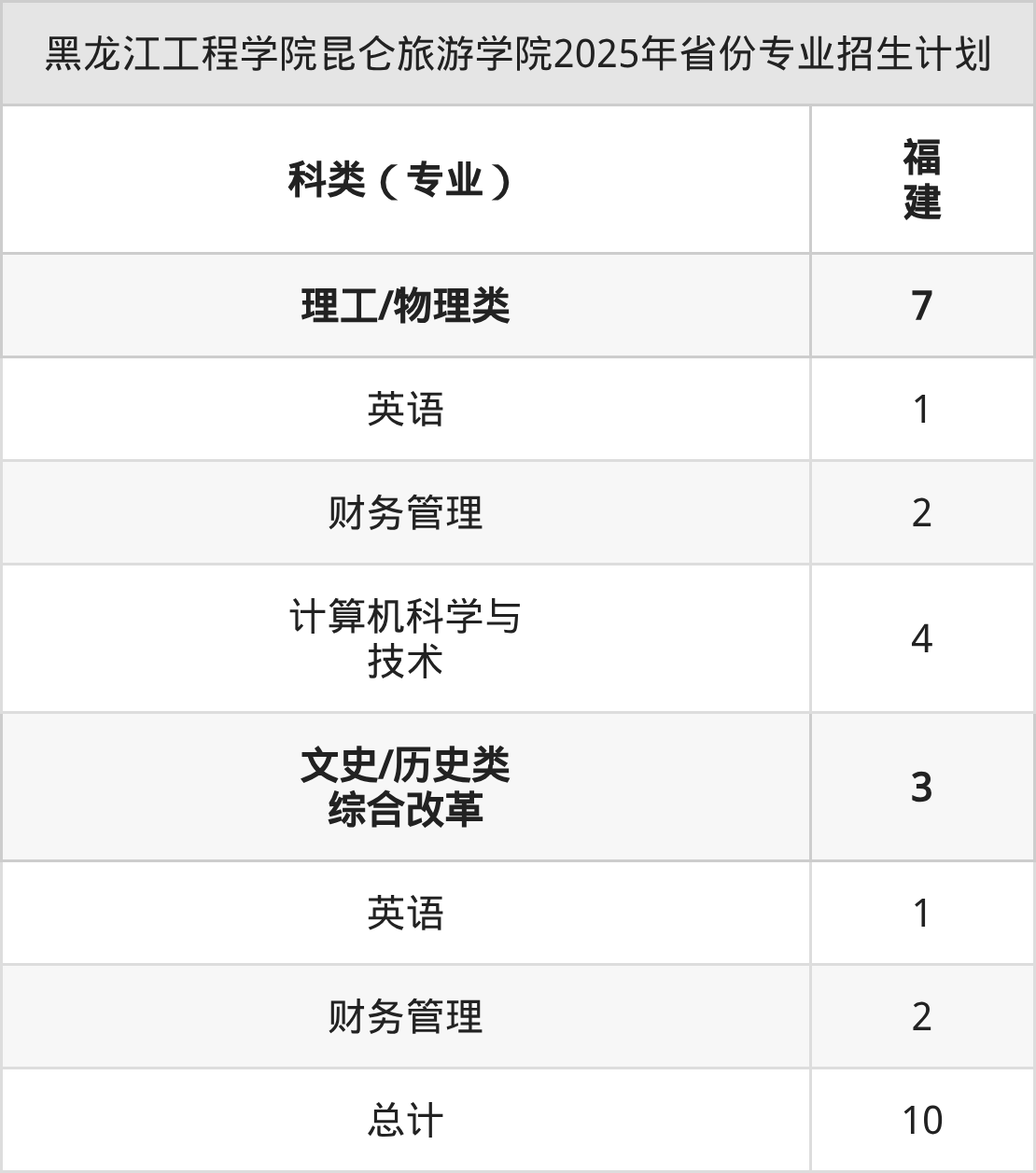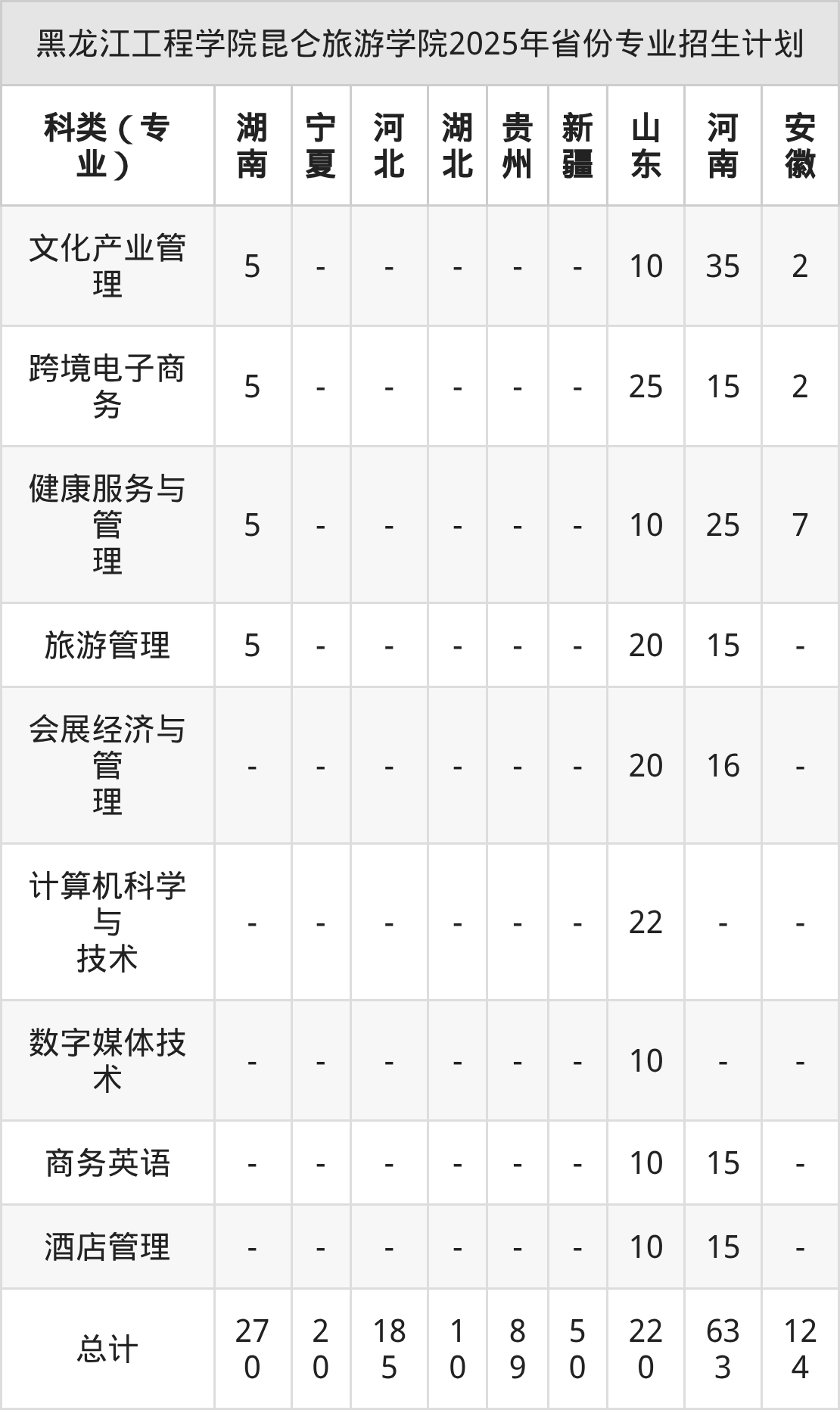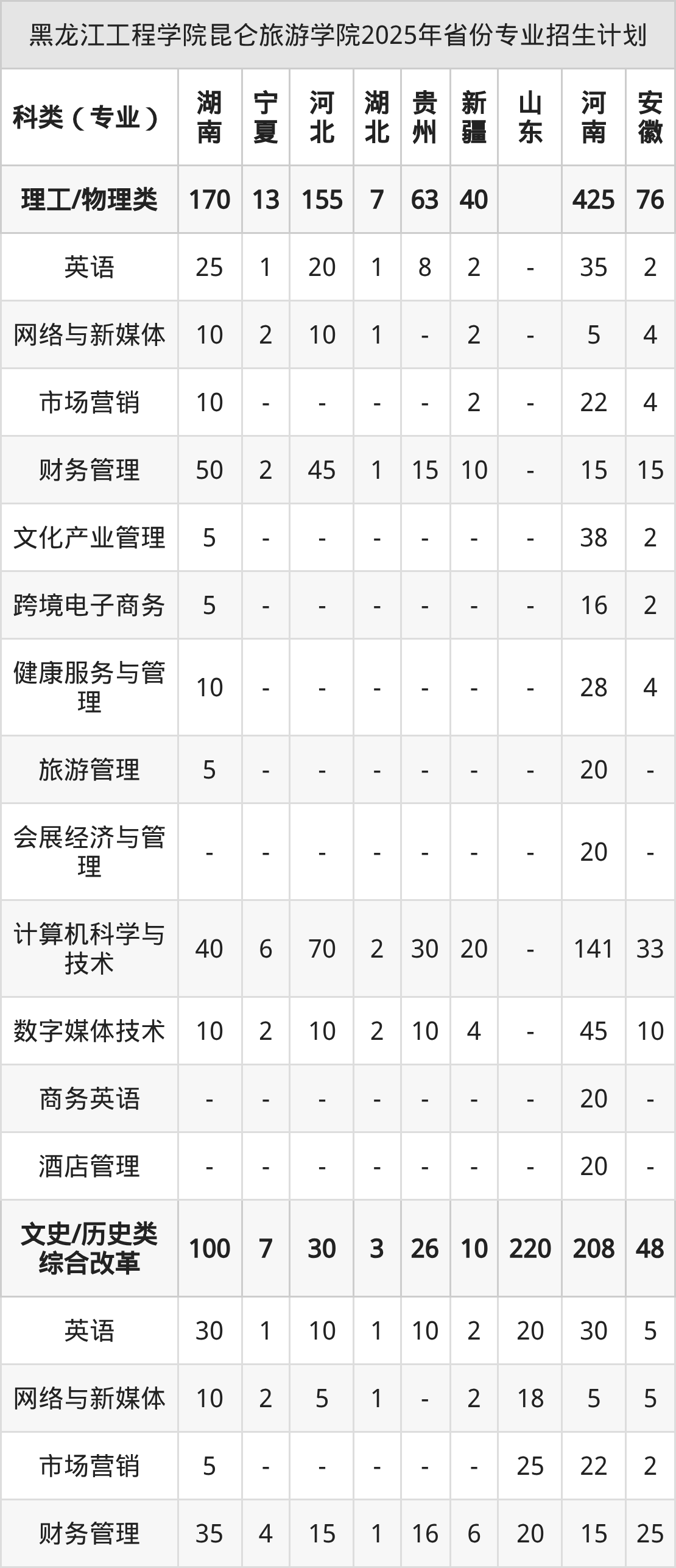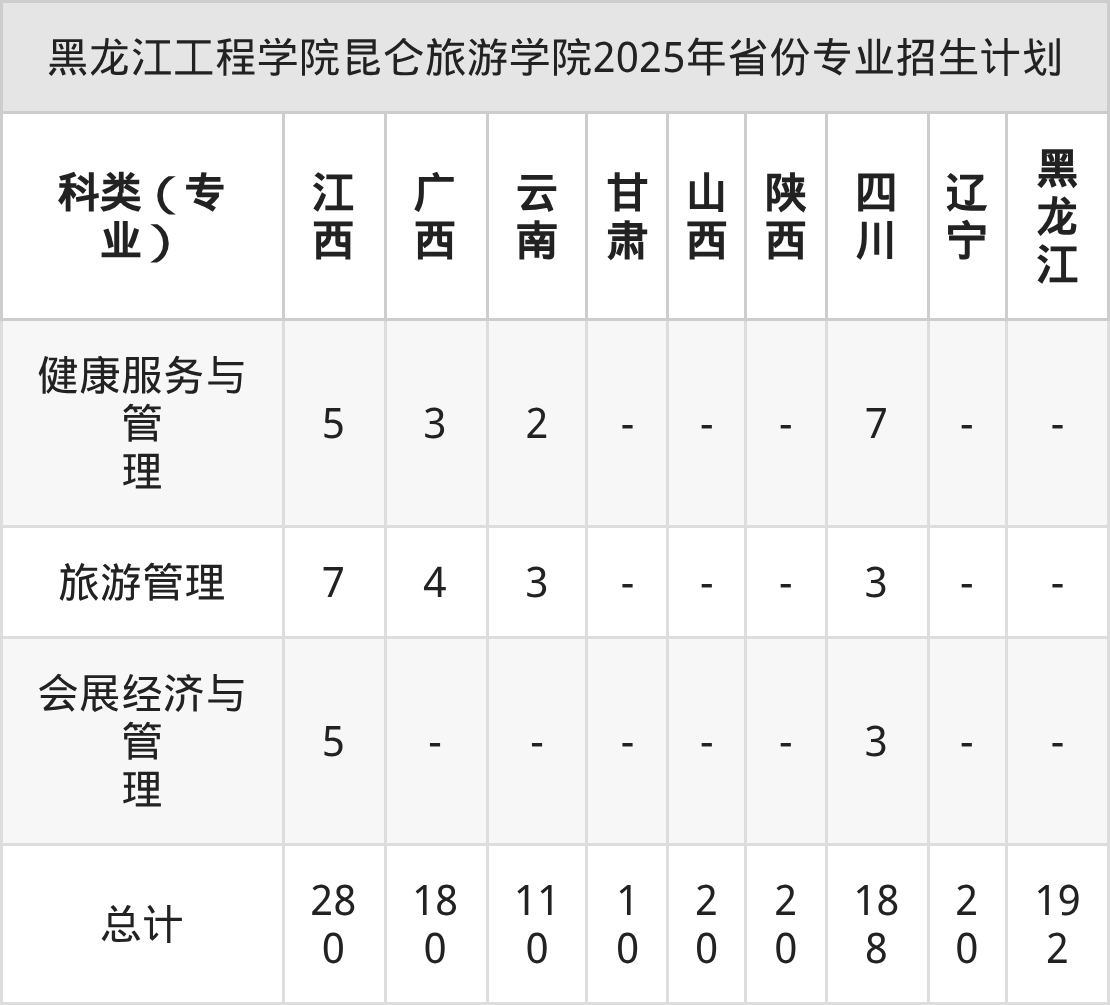 2026年黑龍江工程學(xué)院昆侖旅游學(xué)院本科招生計(jì)劃待公布,下面附上2025年數(shù)據(jù),暫供參考: