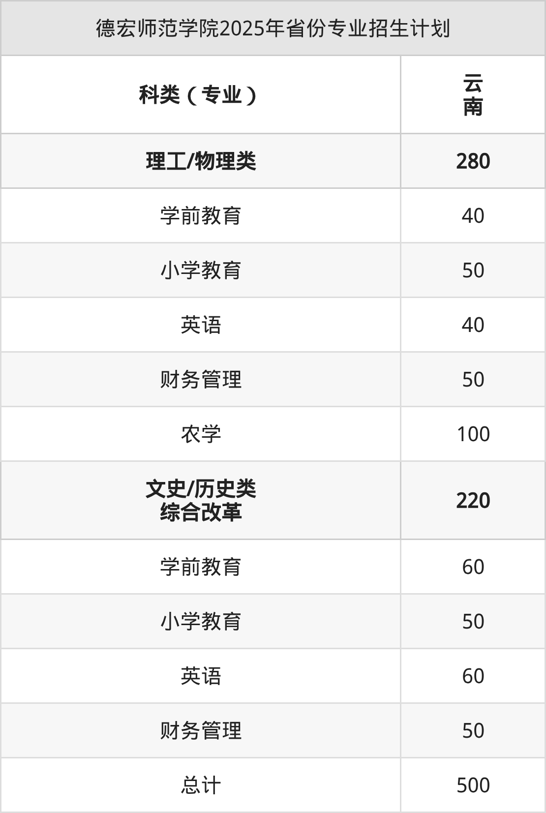 2026年德宏師范學院本科招生計劃待公布,下面附上2025年數(shù)據(jù),暫供參考: