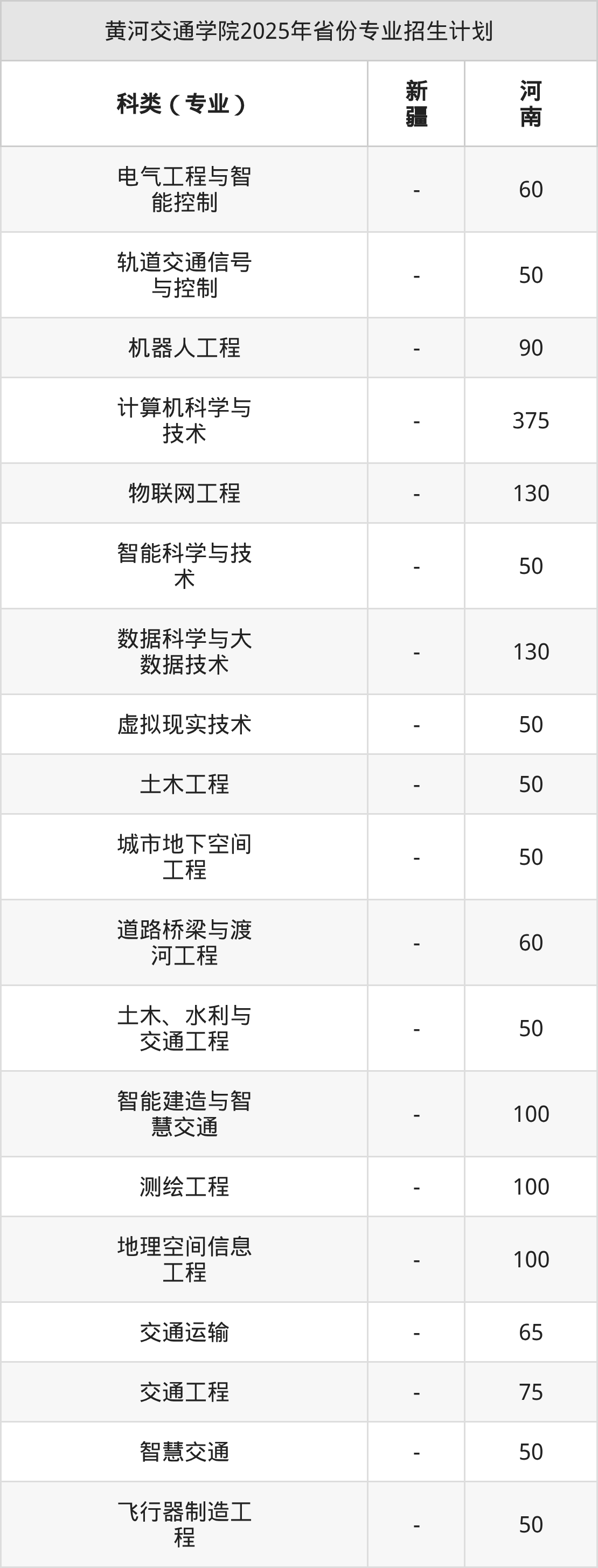 2026年黃河交通學(xué)院本科招生計(jì)劃待公布,下面附上2025年數(shù)據(jù),暫供參考: