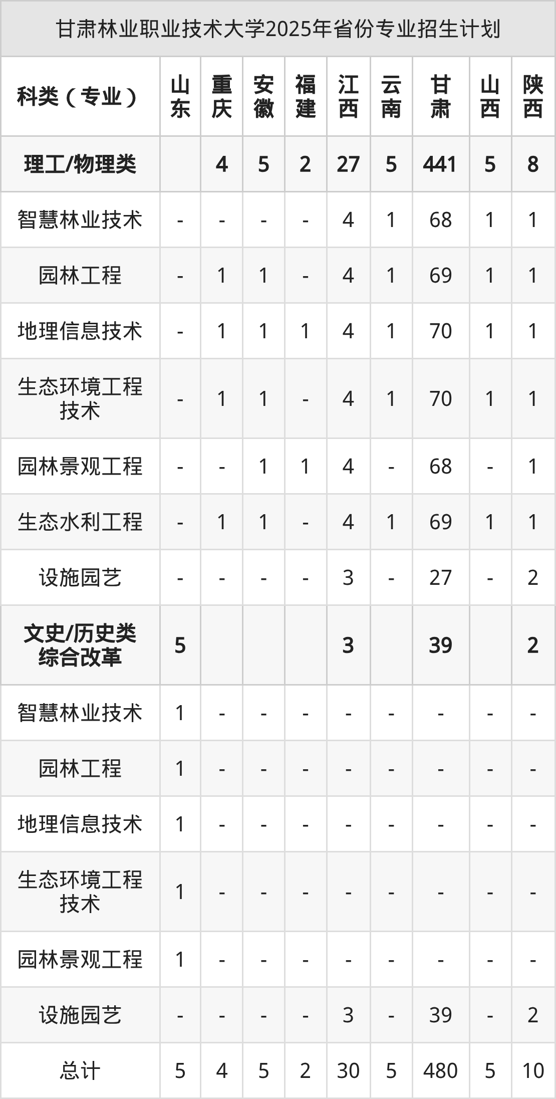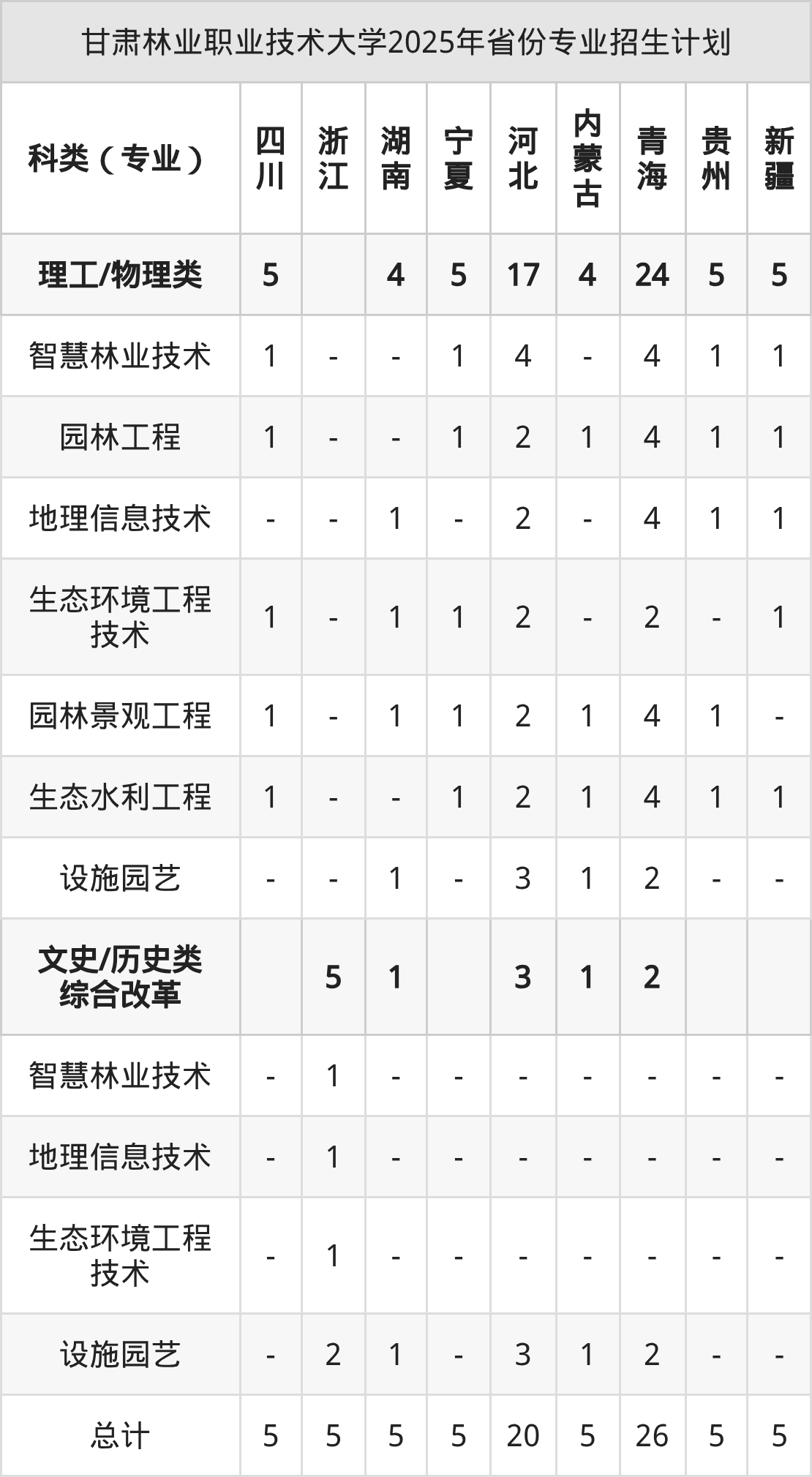 2026年甘肅林業(yè)職業(yè)技術(shù)大學(xué)本科招生計(jì)劃待公布,下面附上2025年數(shù)據(jù),暫供參考: