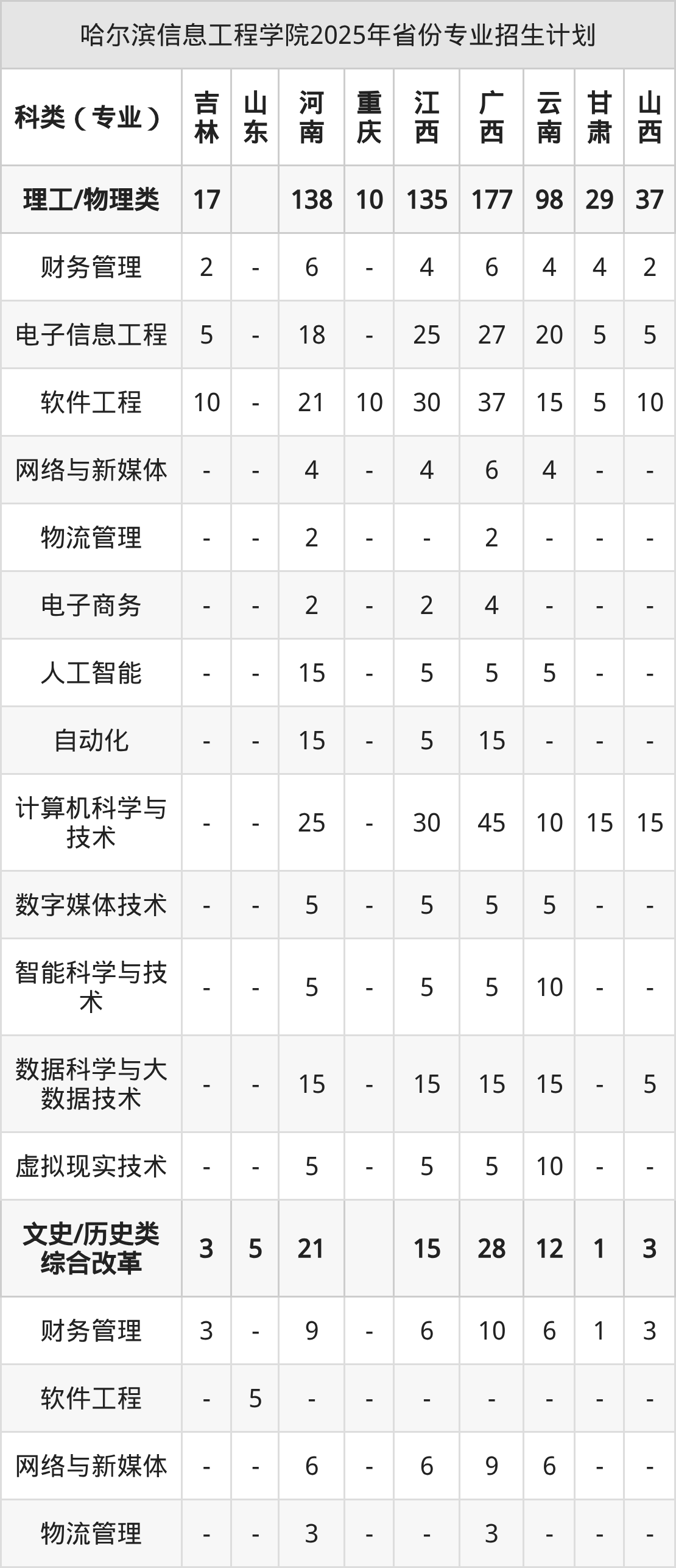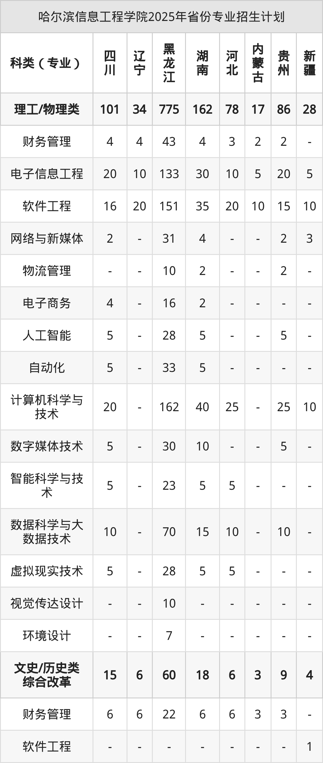 2026年哈爾濱信息工程學(xué)院本科招生計(jì)劃待公布,下面附上2025年數(shù)據(jù),暫供參考: