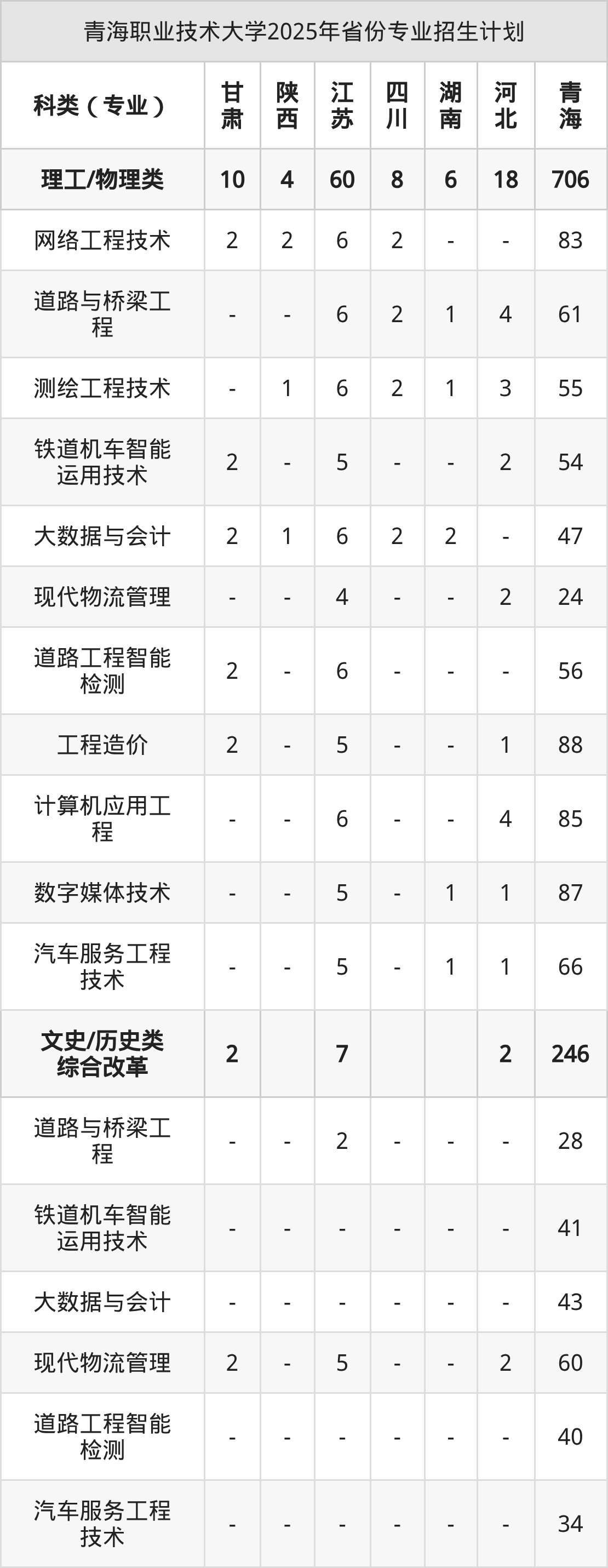 2026年青海職業(yè)技術(shù)大學(xué)本科招生計(jì)劃待公布,下面附上2025年數(shù)據(jù),暫供參考: