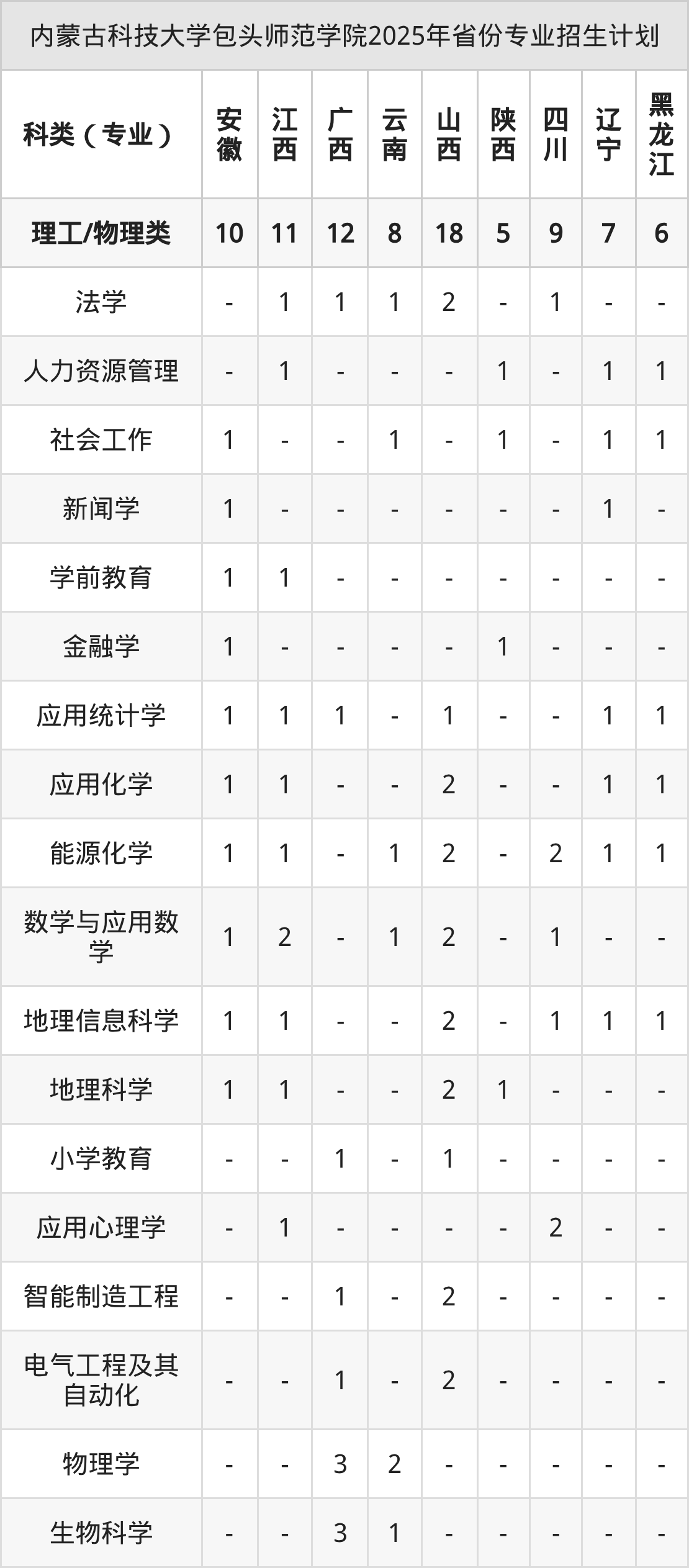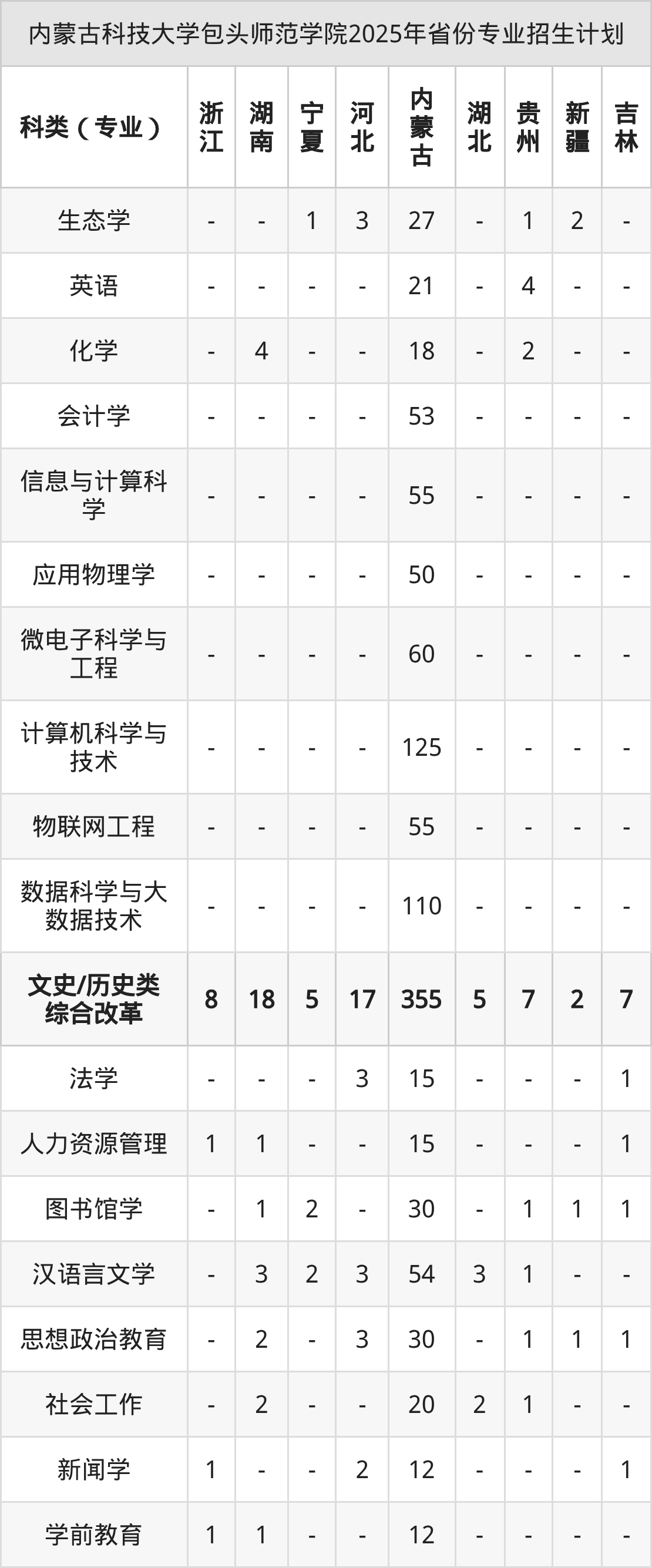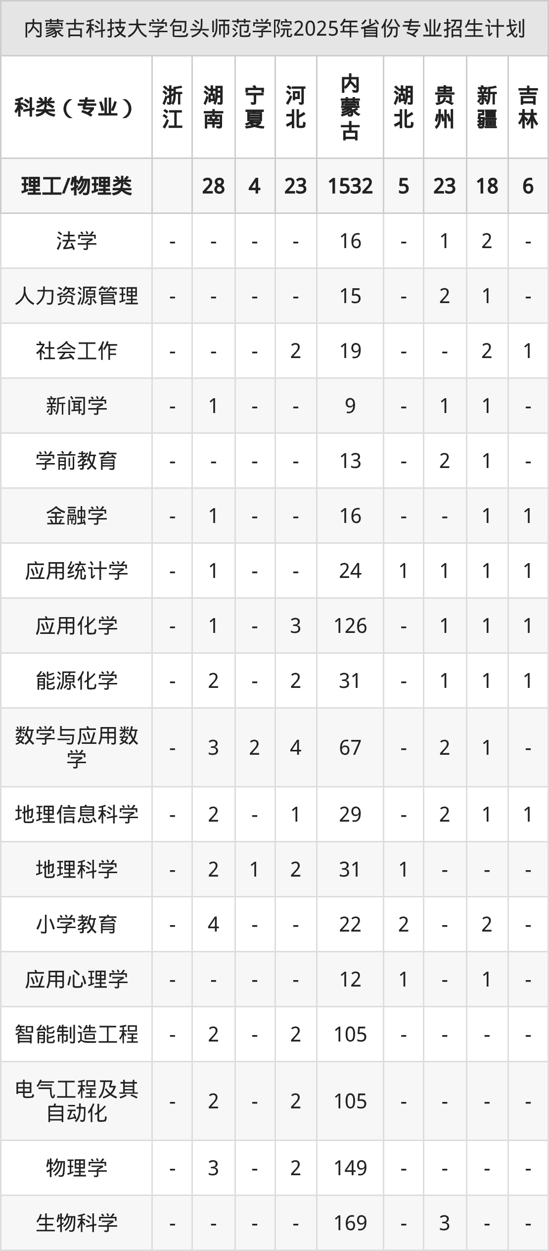 2026年內(nèi)蒙古科技大學包頭師范學院本科招生計劃待公布,下面附上2025年數(shù)據(jù),暫供參考: