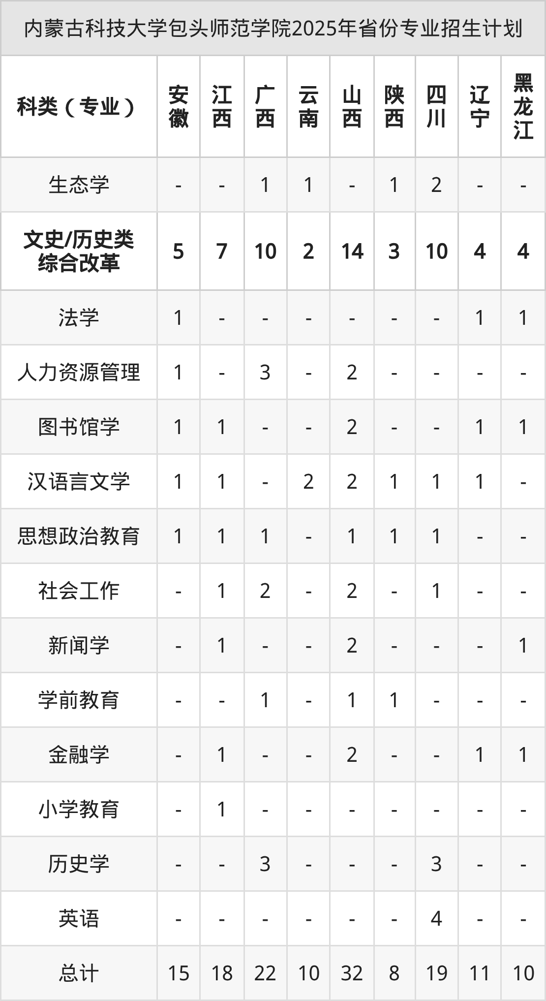 而各省份的招生計劃數(shù)為安徽15人,廣西22人,內(nèi)蒙古1887人,山東33人,江西18人等。